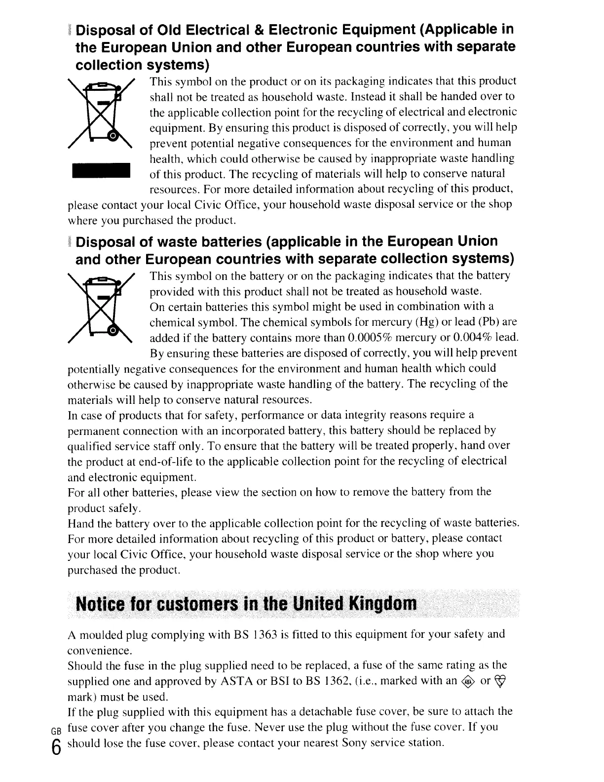 6 should lose the fuse cover, please contact your nearest Sony service station.