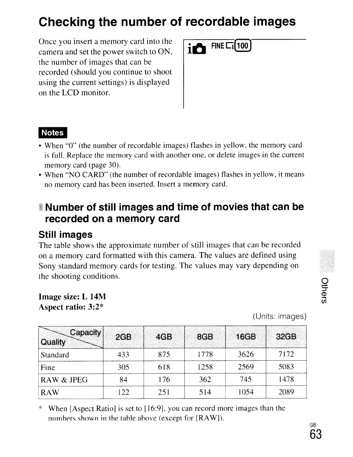 I Number of still images and time of movies that can be