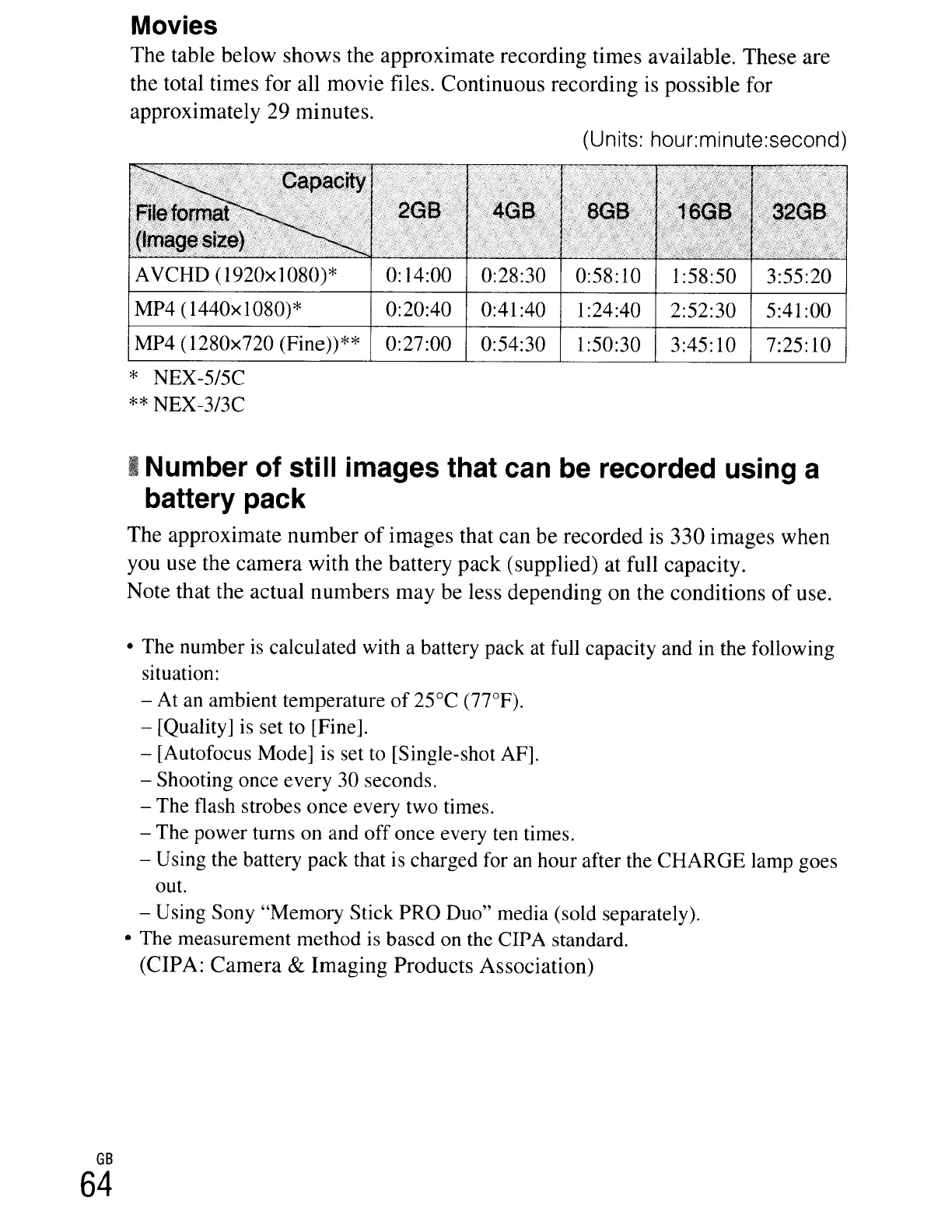 • The measurement method is based on the CIPA standard.