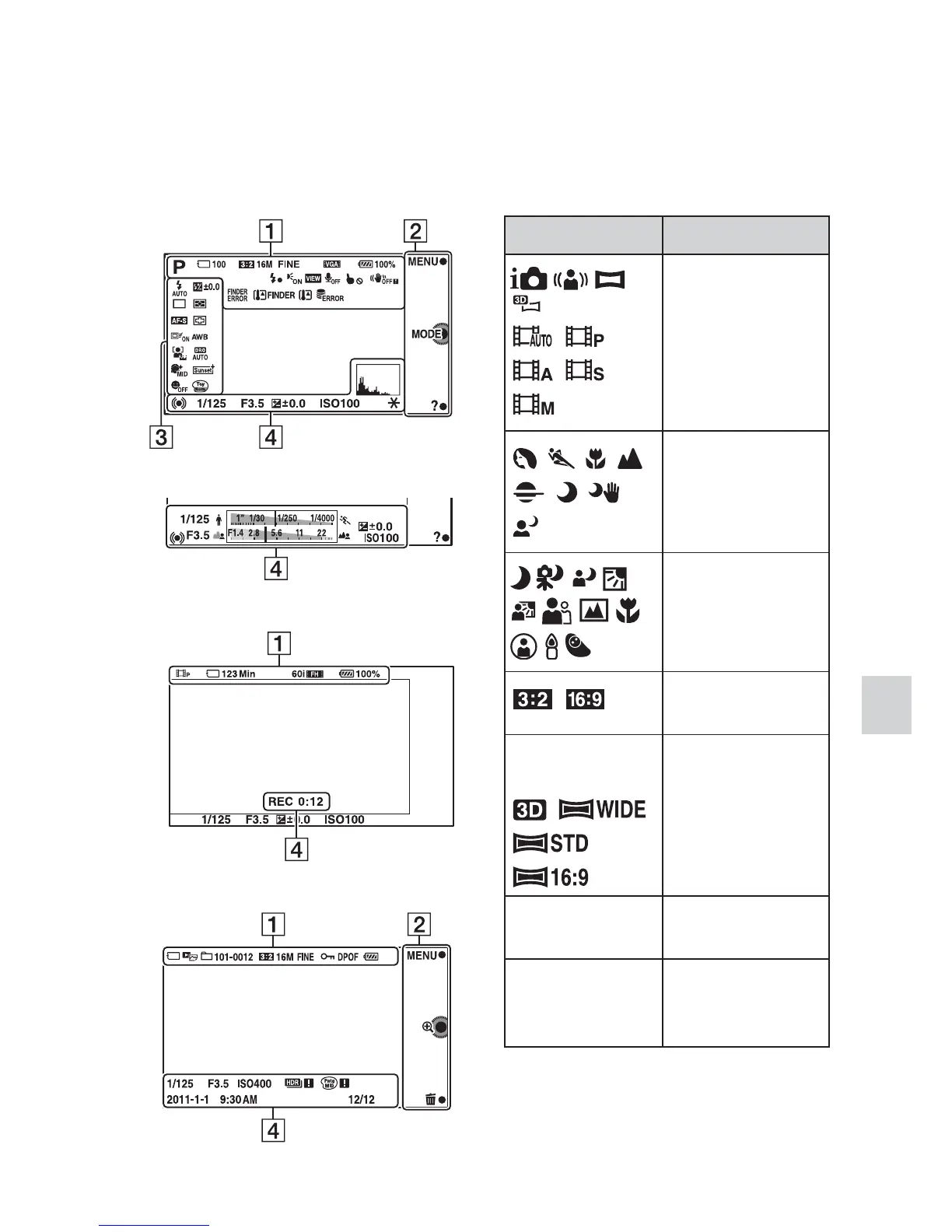 Sony NEX-5N - List of Icons on the LCD Monitor; Graphic Display; Movie Recording