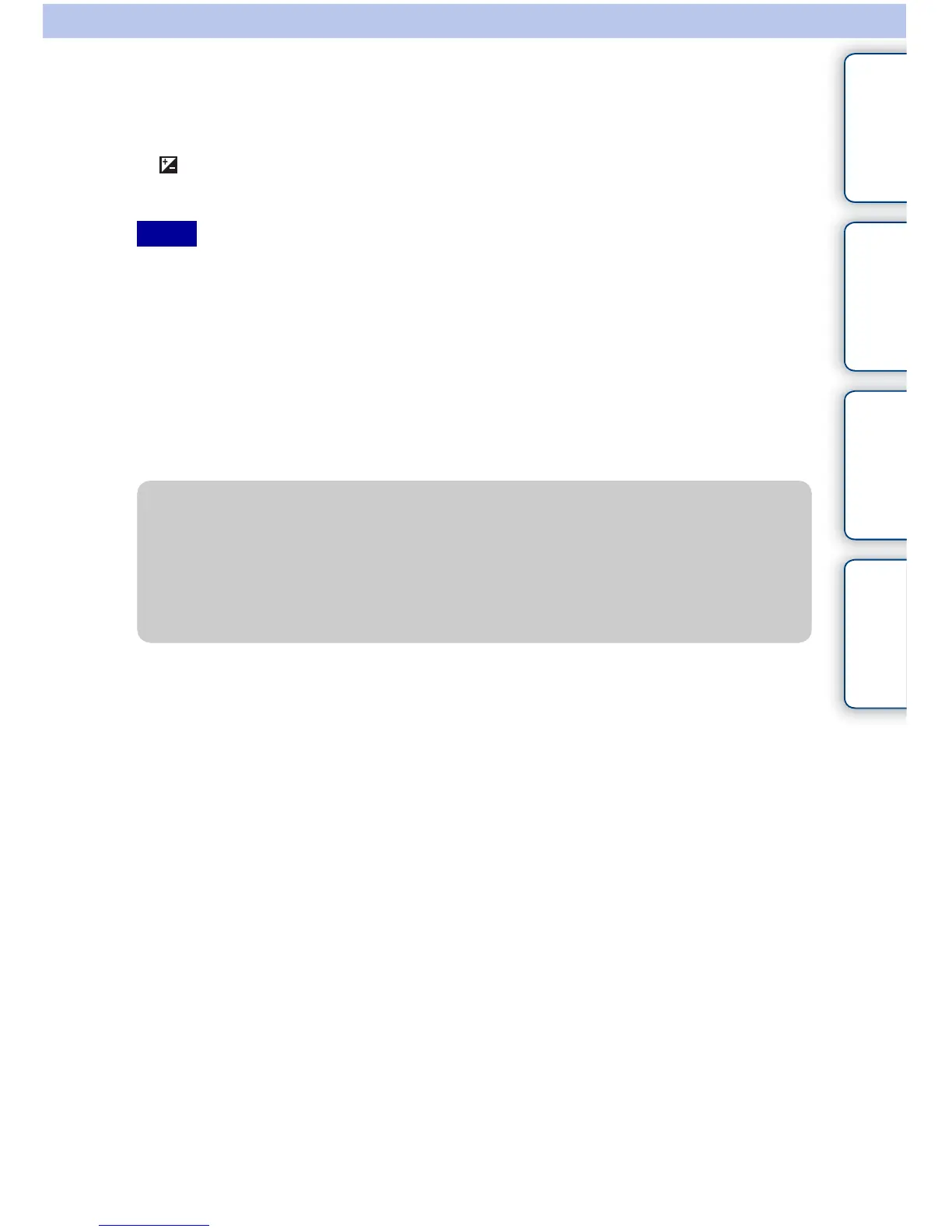 • Even though you can adjust the exposure between –5.0 EV and +5.0 EV, only a value between –2.0 EV