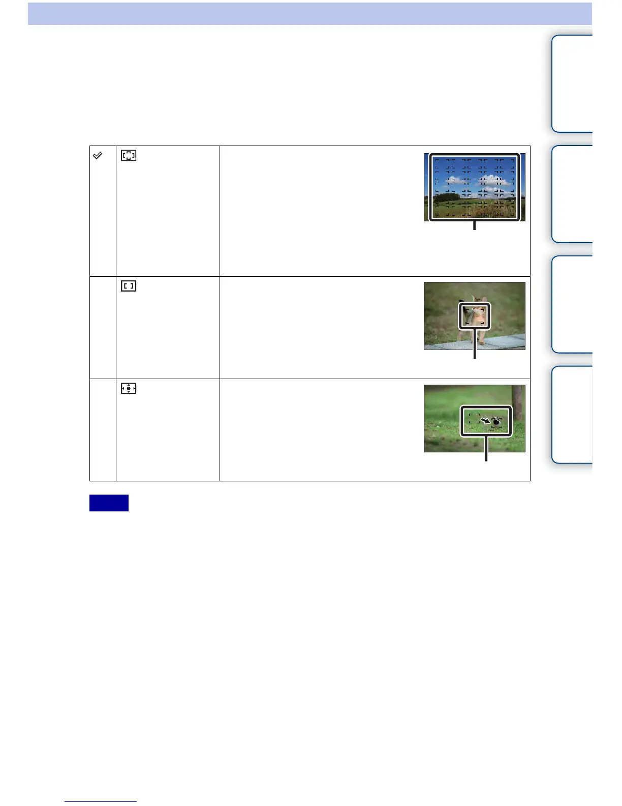 • When the AF illuminator is used, the setting of [Autofocus Area] is invalid and the AF area is indicated