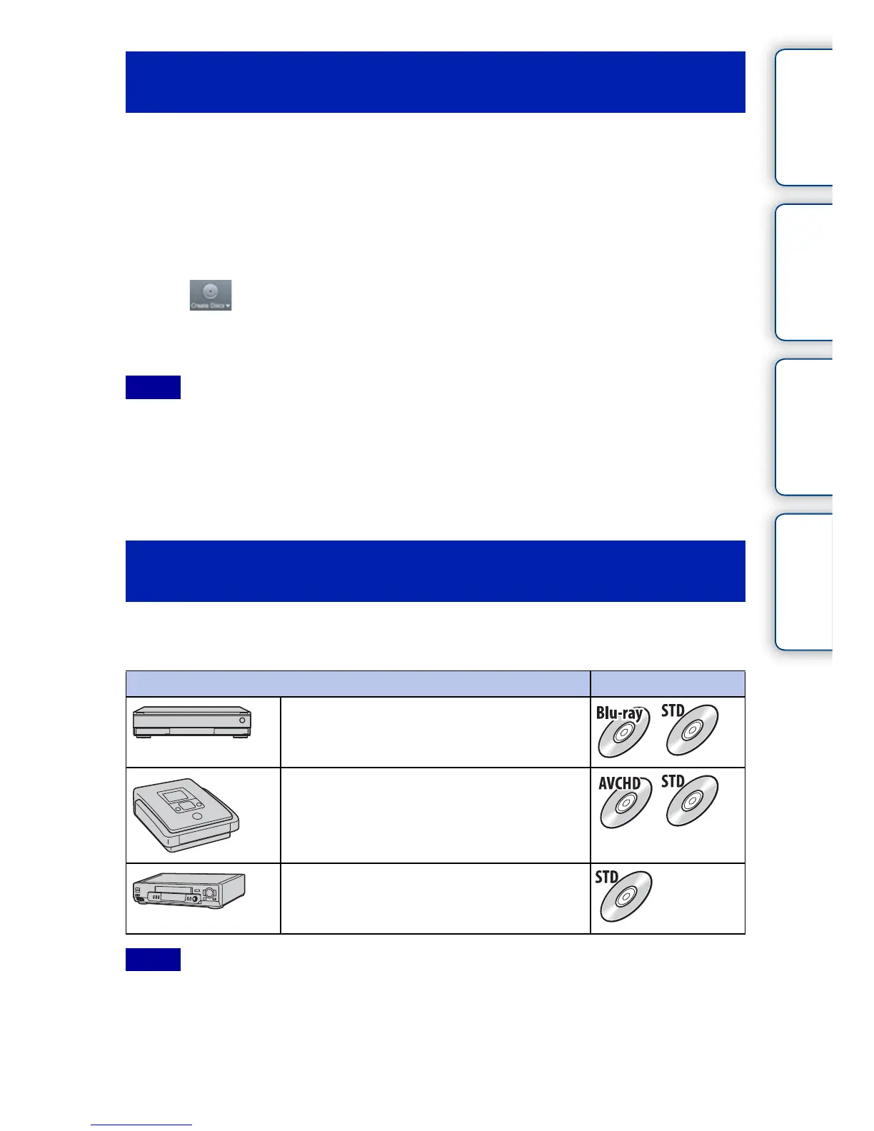 • For details on creating a disc, refer to the operating manual that comes with the device used.