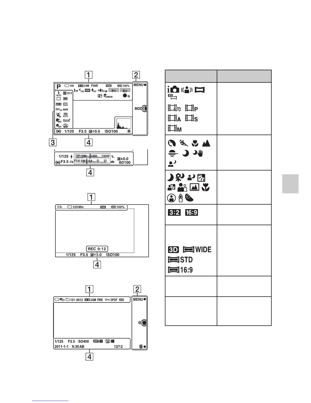 Sony Nex-7 - List of Icons on the Screen; Movie Recording