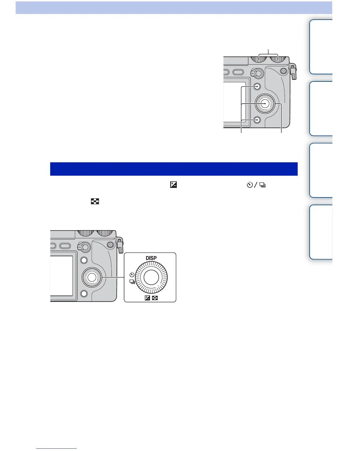When shooting, DISP (Display Contents), (Exposure Comp.), and (Drive