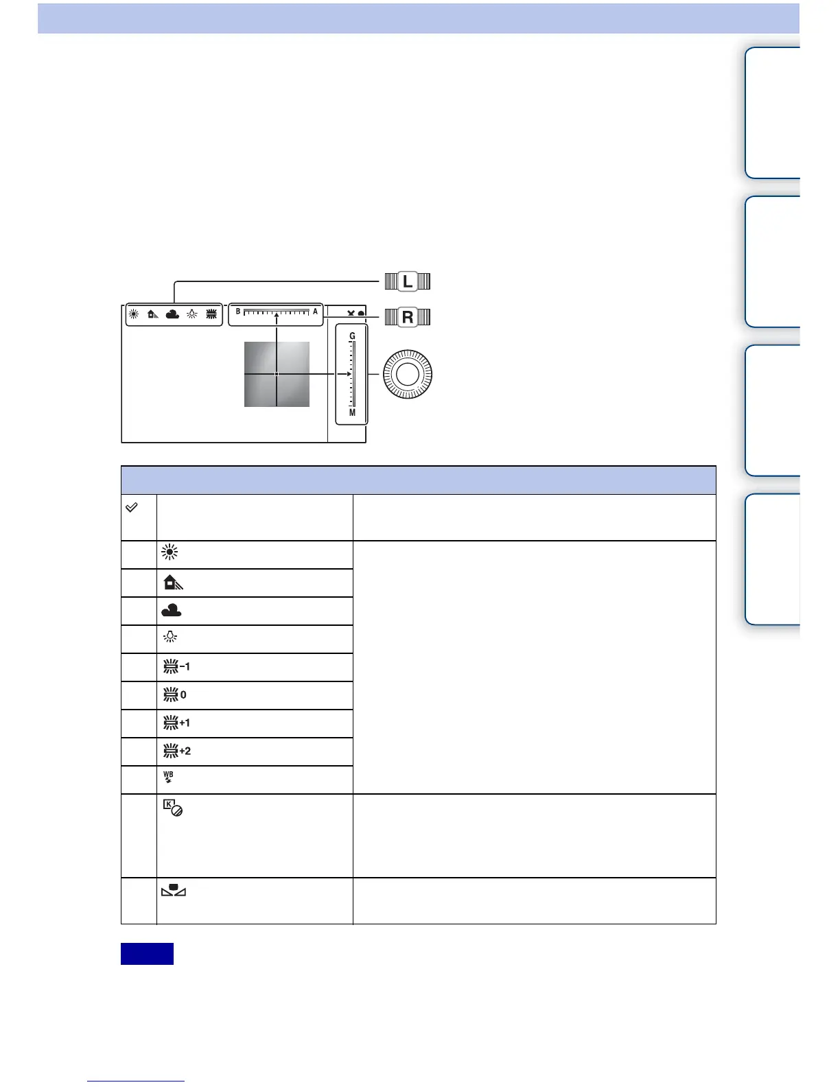 each white balance mode separately. The adjusted values are retained even if you turn off the camera or