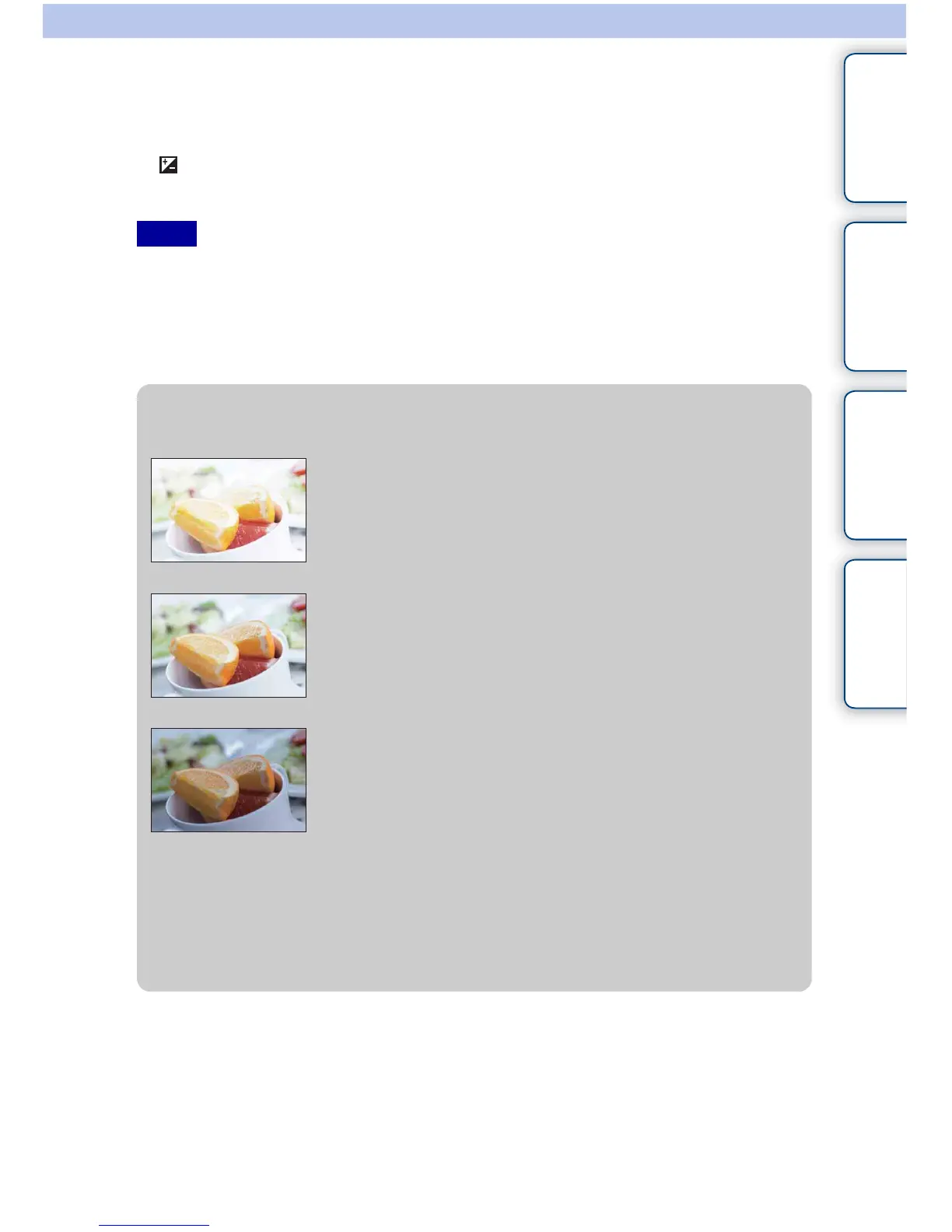 Or, [Menu] t [Brightness/Color] t [Exposure Comp.] t desired value.