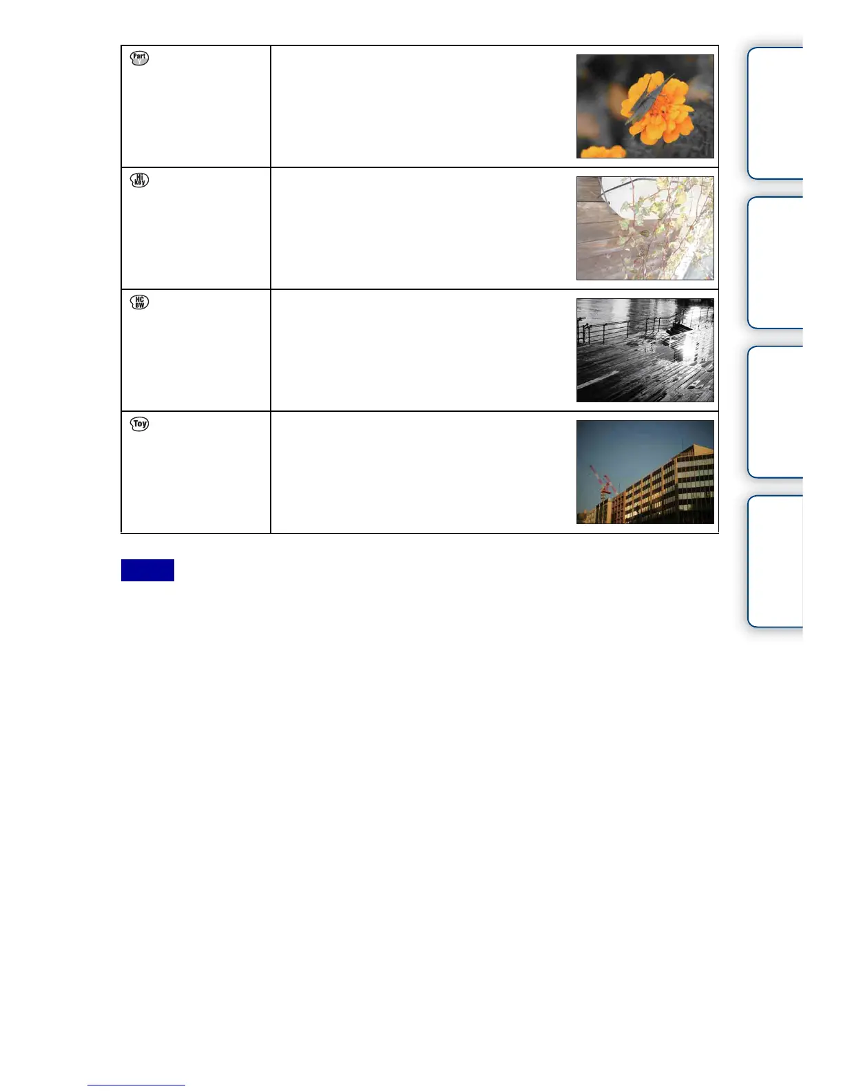 • When [Partial Color (Red)], [Partial Color (Green)], [Partial Color (Blue)], or [Partial Color (Yellow)] is