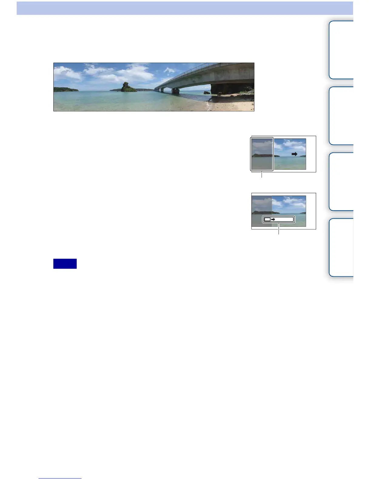 composed image. If this happens, move the camera fast to record a full panoramic image.