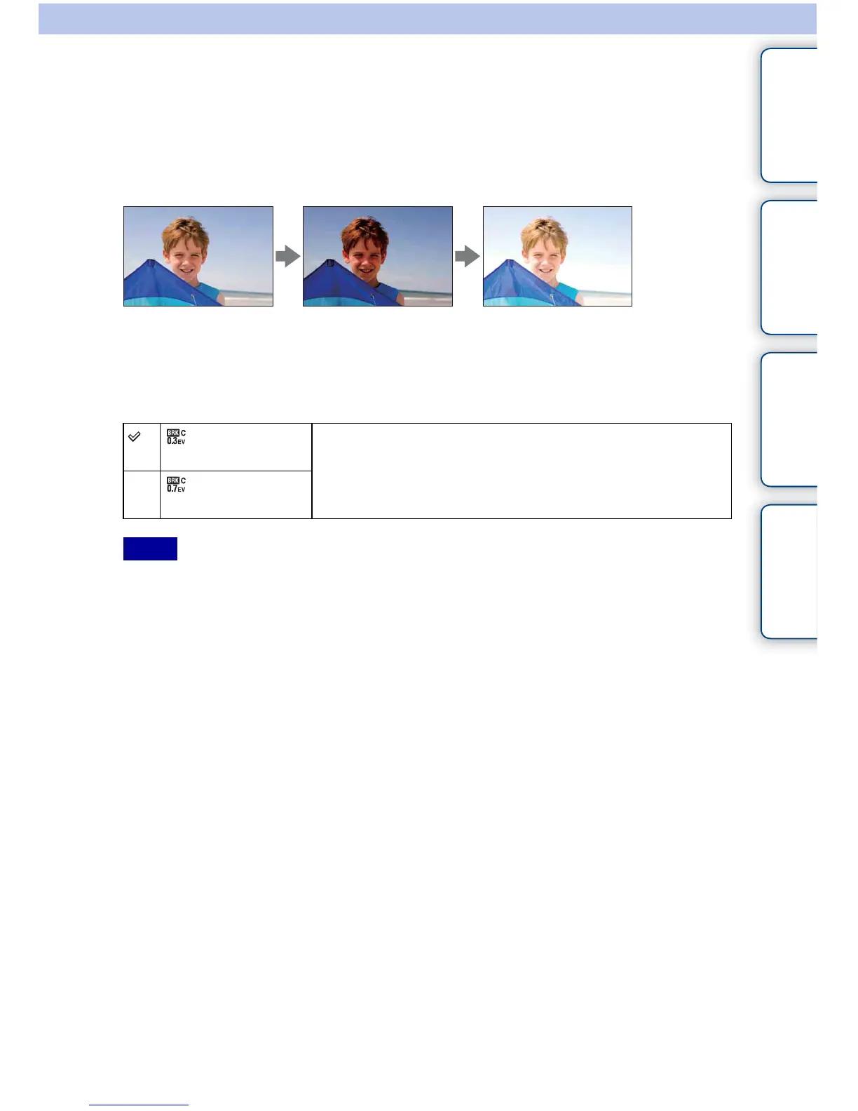 Shoots three images while automatically shifting the exposure from base, to darker, then
