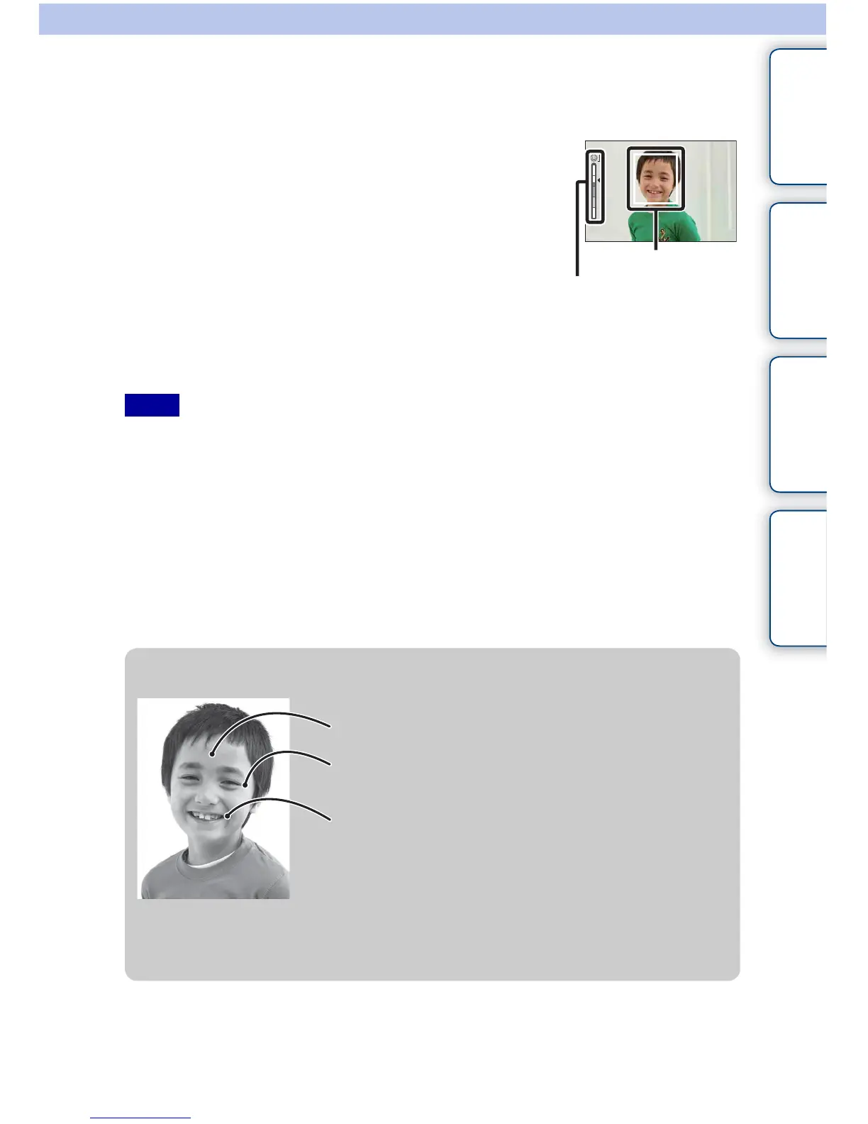 • Unless the subject is in focus, the shutter is not released, even if the smile level exceeds the b point.