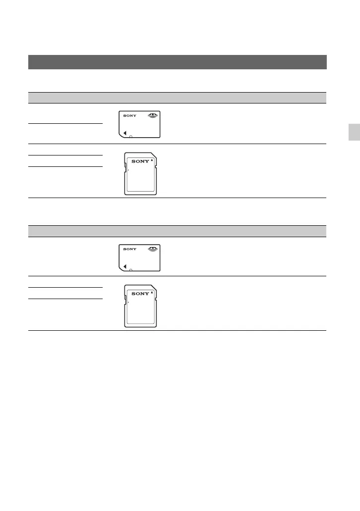 • “Memory Stick PRO Duo” media, half the size of “Memory Stick” media, or standard size SD cards can