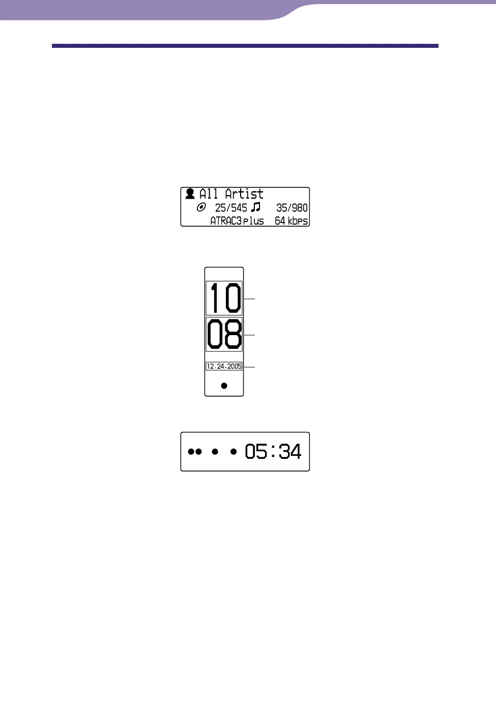 You can view various information in the display while using the Music Library