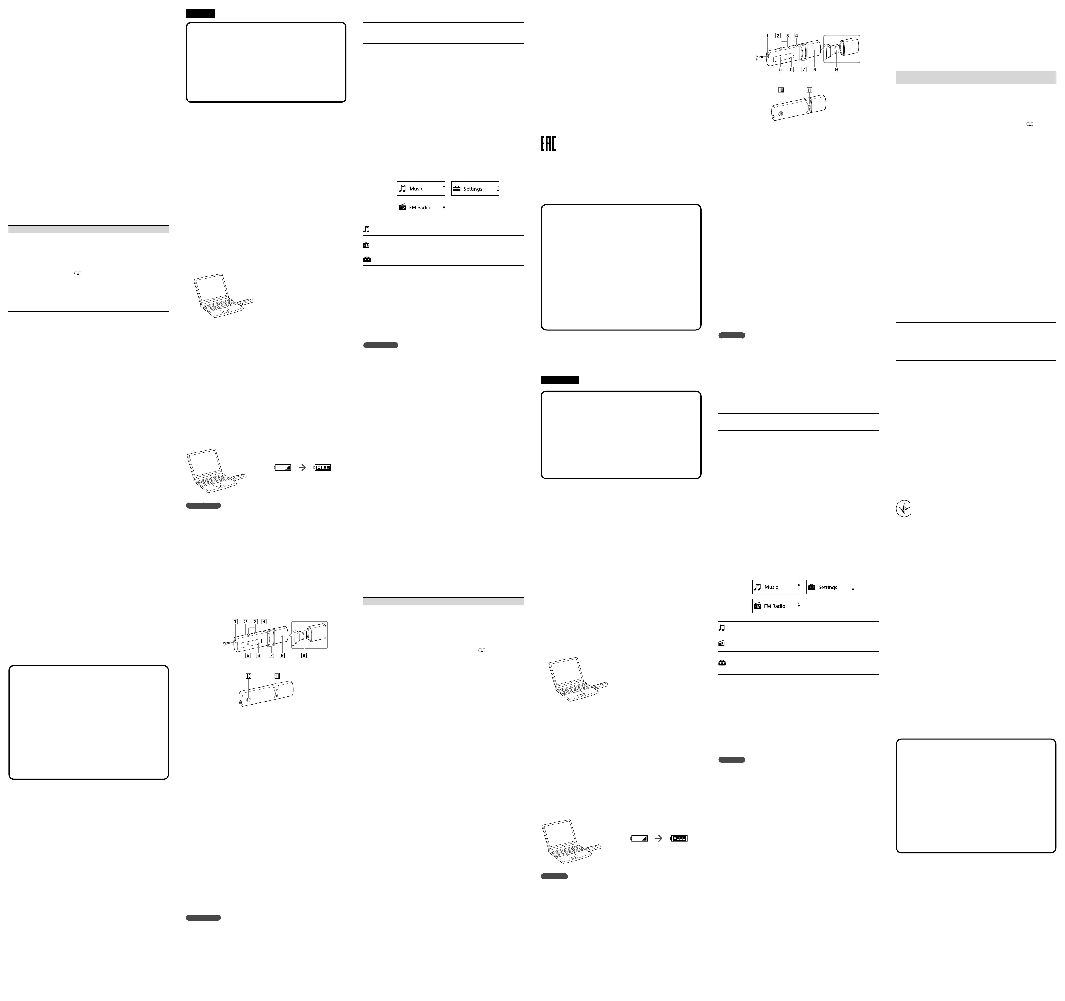 Walkman, может привести к неполадкам в работе Walkman. В этом