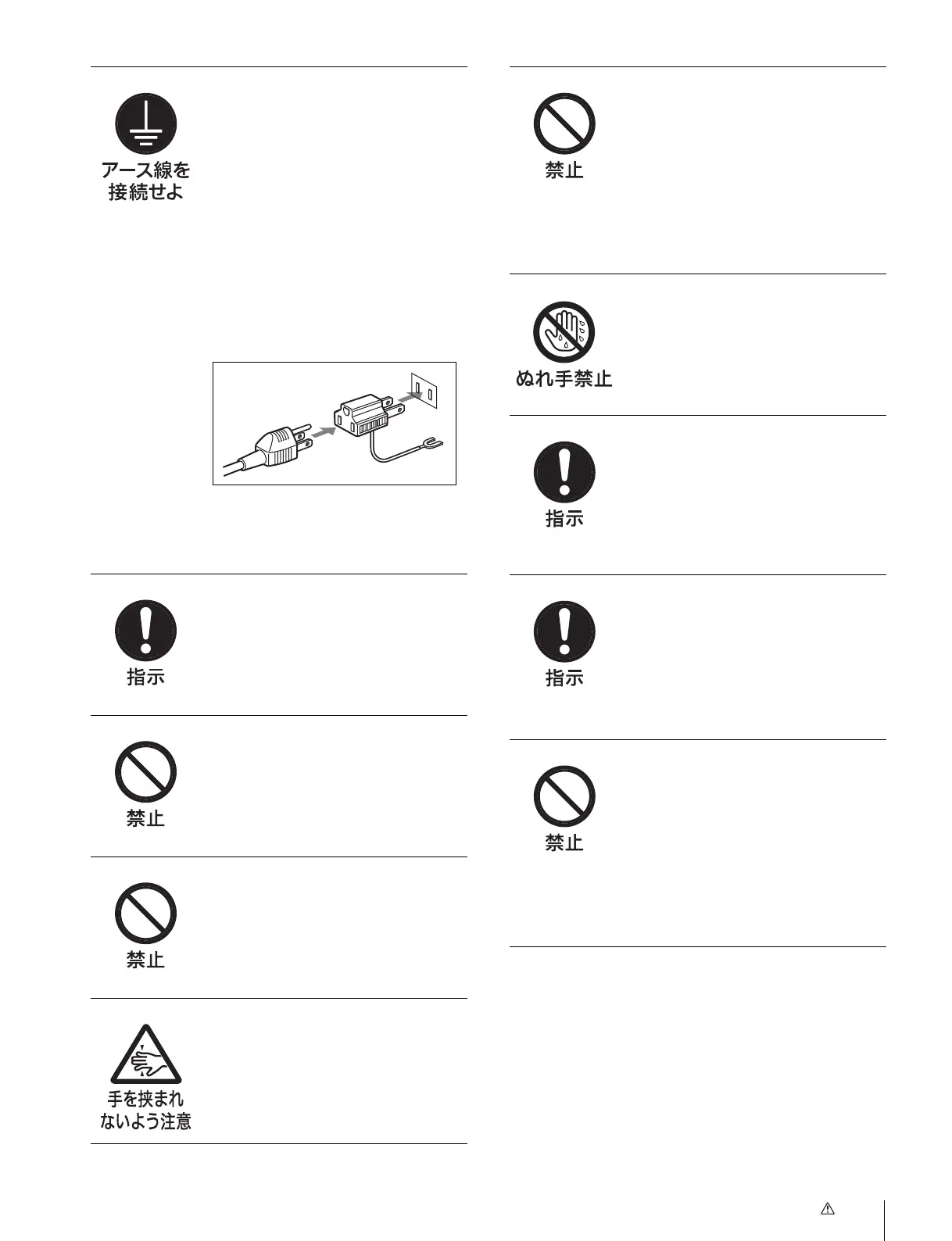 安全アースを接続しないと、感電の原因