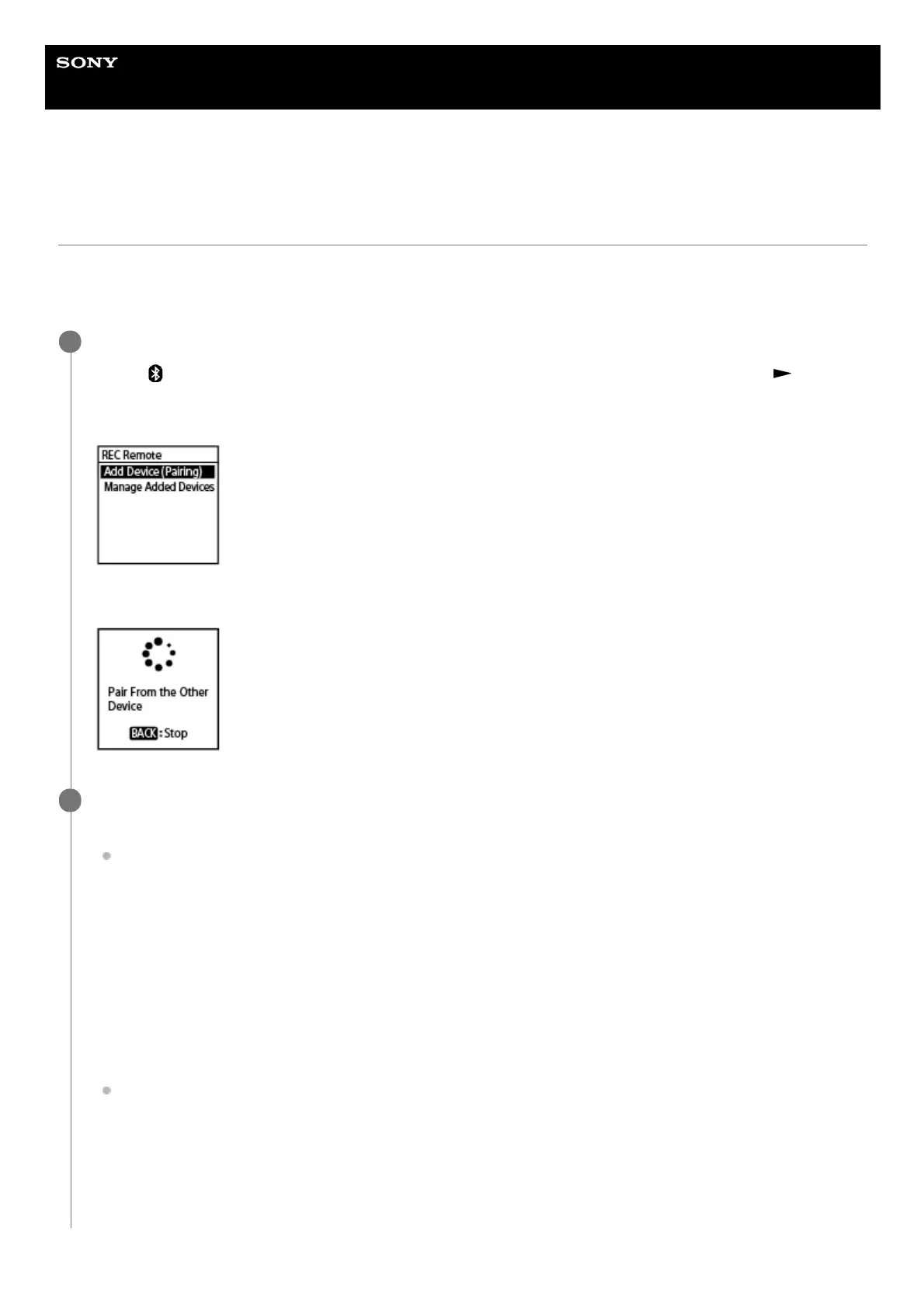 Bluetooth] - [REC Remote] - [Add Device (Pairing)] from the HOME menu, and then press .