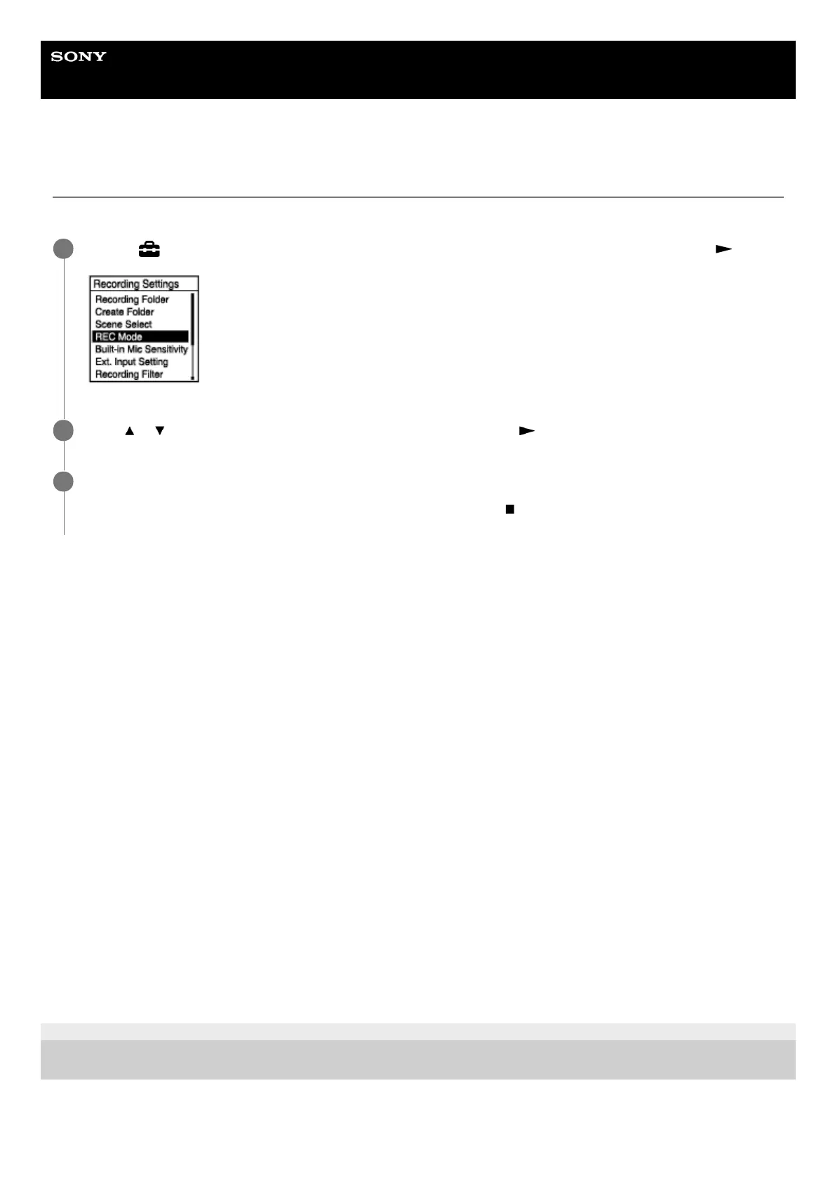 Settings] - [Recording Settings] - [REC Mode] from the HOME menu, and then press .
