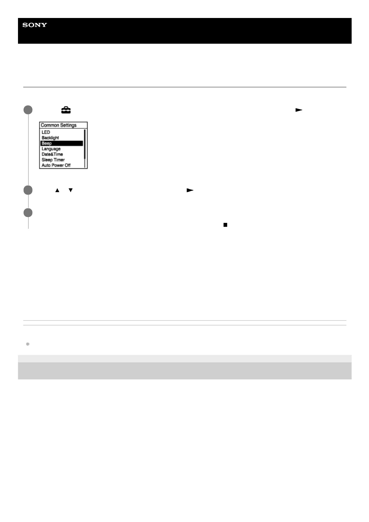 Settings] - [Common Settings] - [Beep] from the HOME menu, and then press .