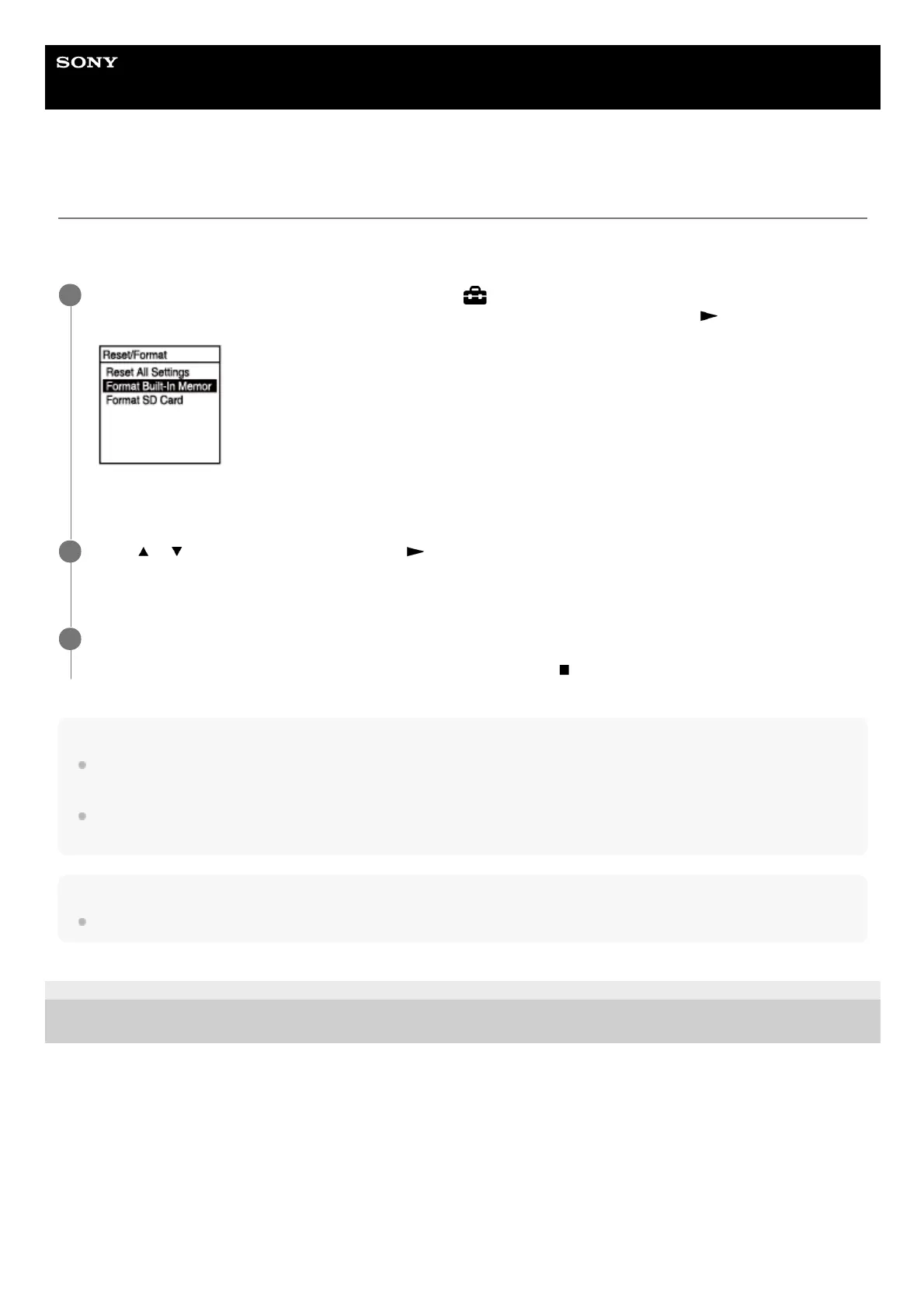 Be aware that formatting the built-in memory will delete all of the stored data, including protected files and Sound Organizer 2,