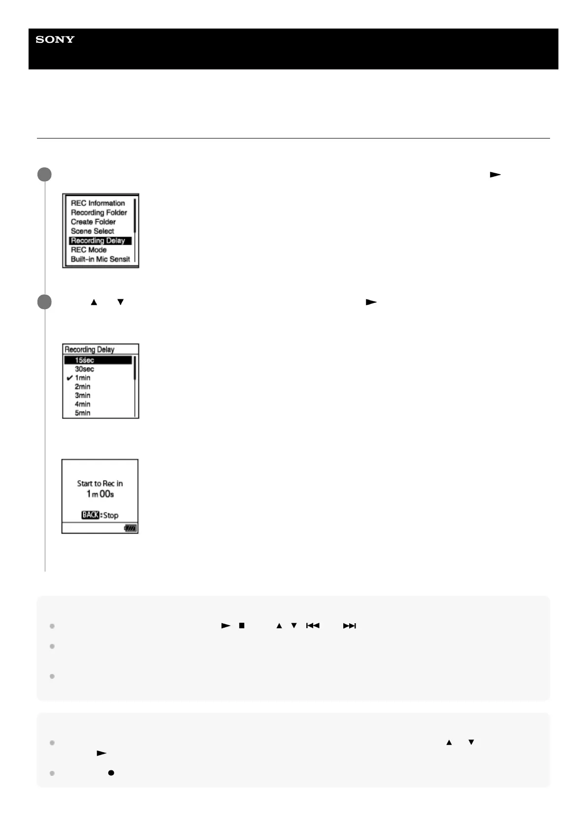 While recording is on standby, select [Recording Delay] on the OPTION menu, and then press