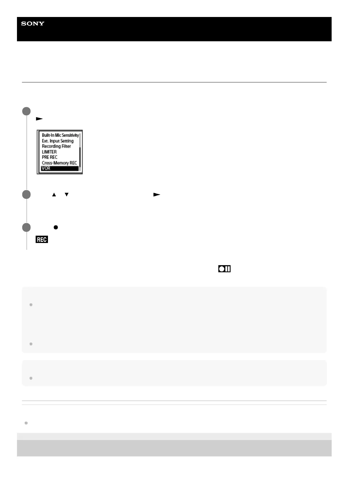 The VOR function is affected by the ambient sound conditions. Select the sensitivity level of the built-in microphones suitable to