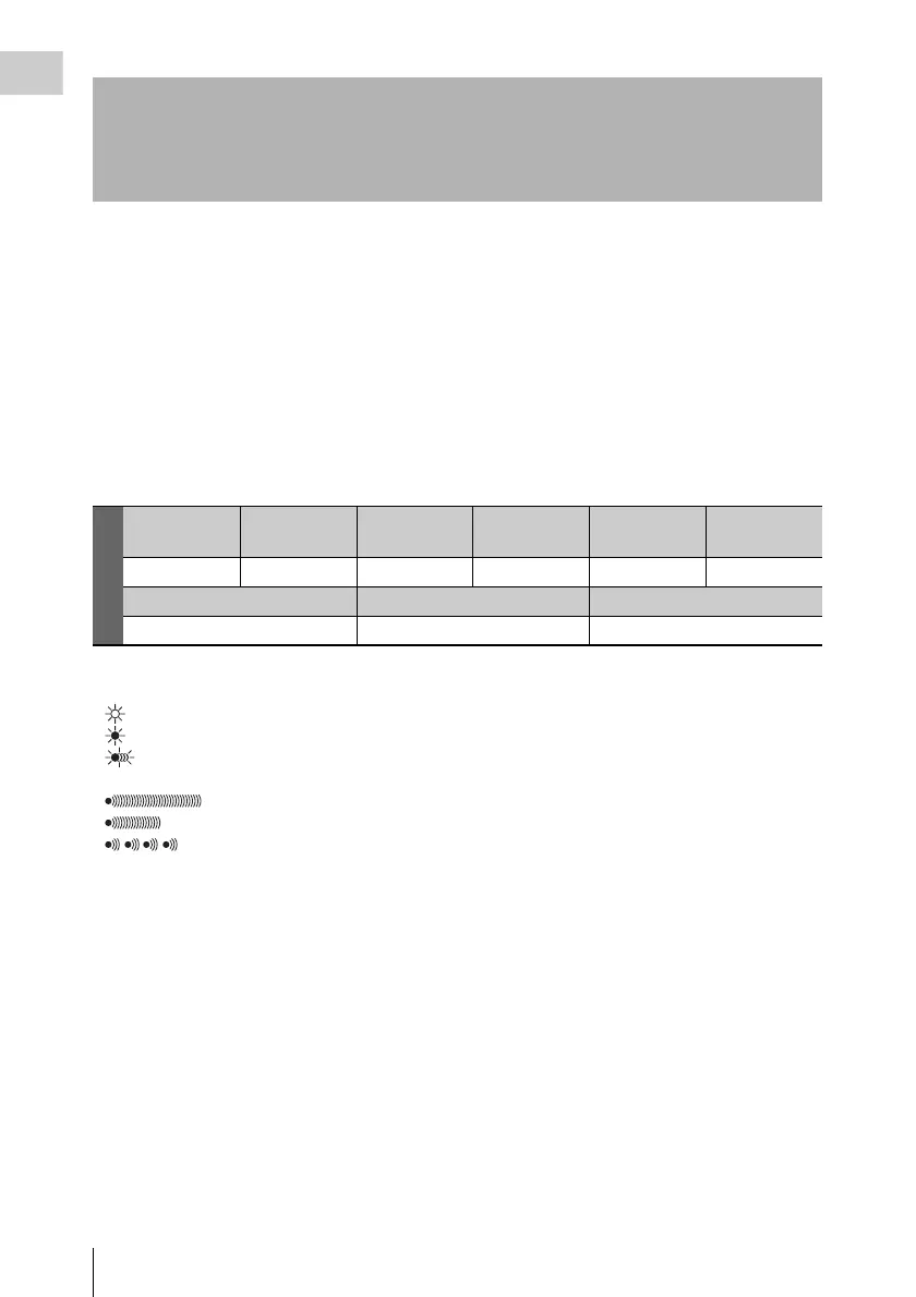 • The operation of the WARNING indicator and the indicators in the viewfinder is represented by graphic