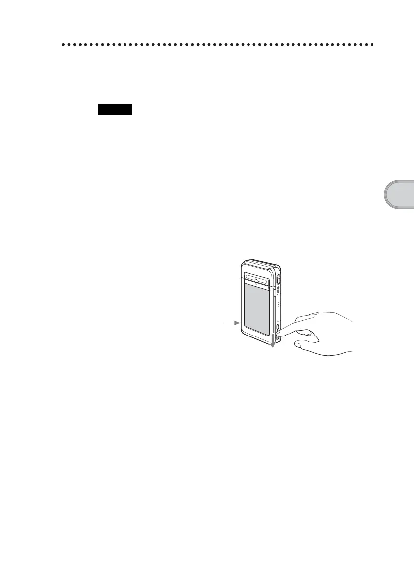 While sliding the POWER switch, press the RESET button