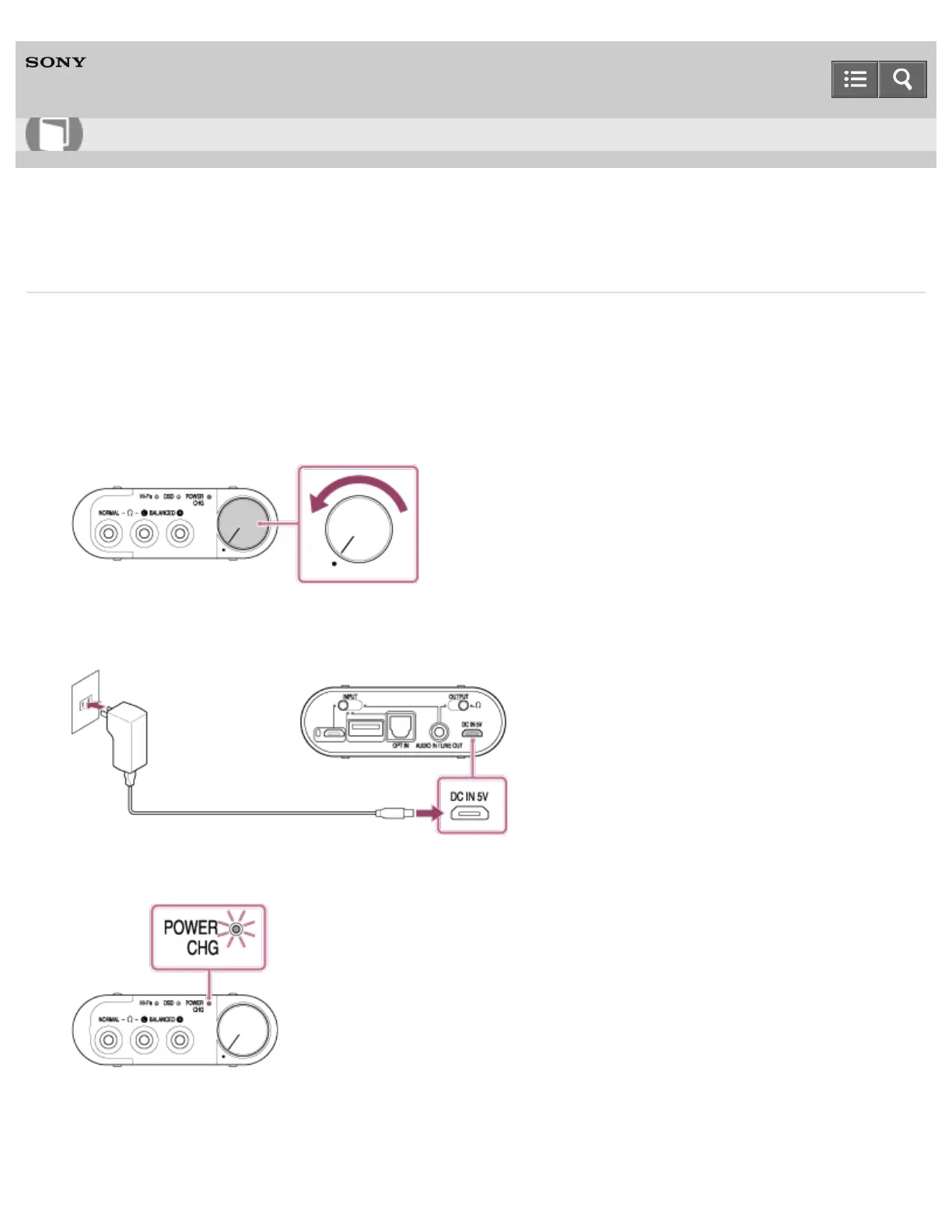 2. Connect the DC IN 5V port of the headphone amplifier and the USB AC adaptor (AC-UD20) (sold separately) using