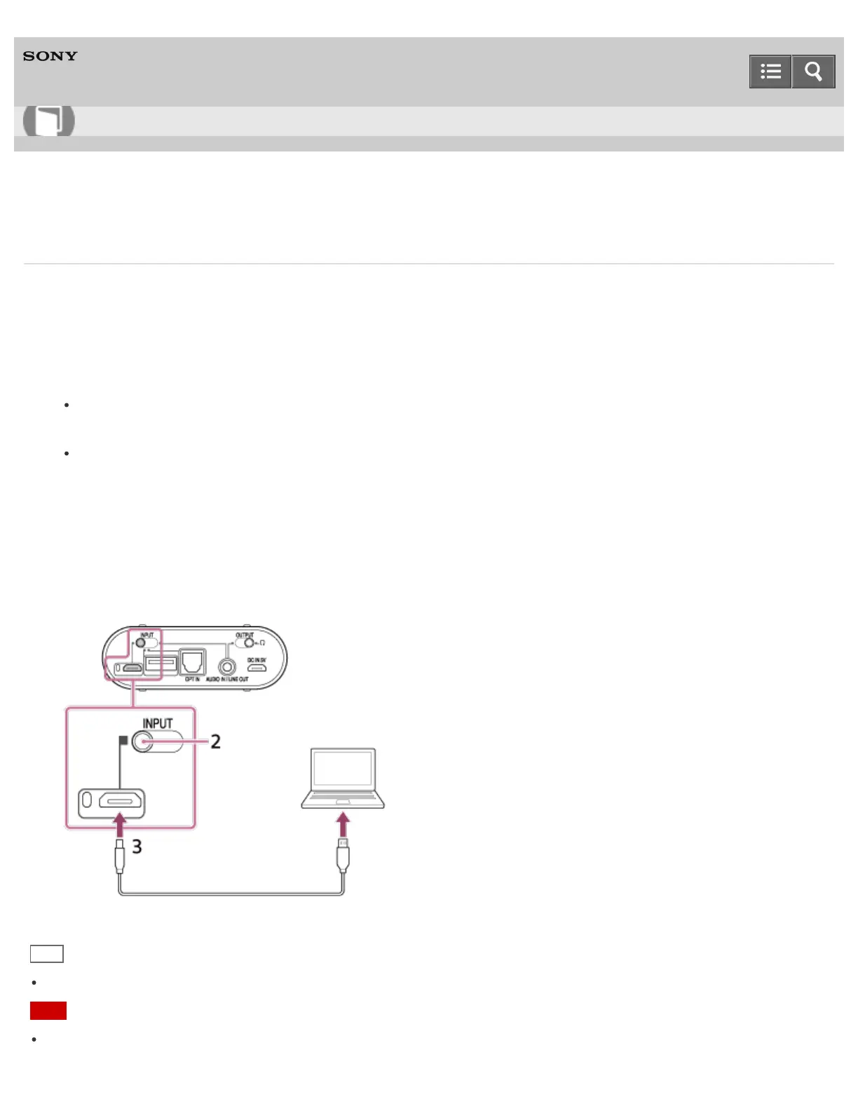 2. Set the INPUT select switch to the position of the Xperia/WALKMAN/PC (USB AUDIO) connecting port (left edge