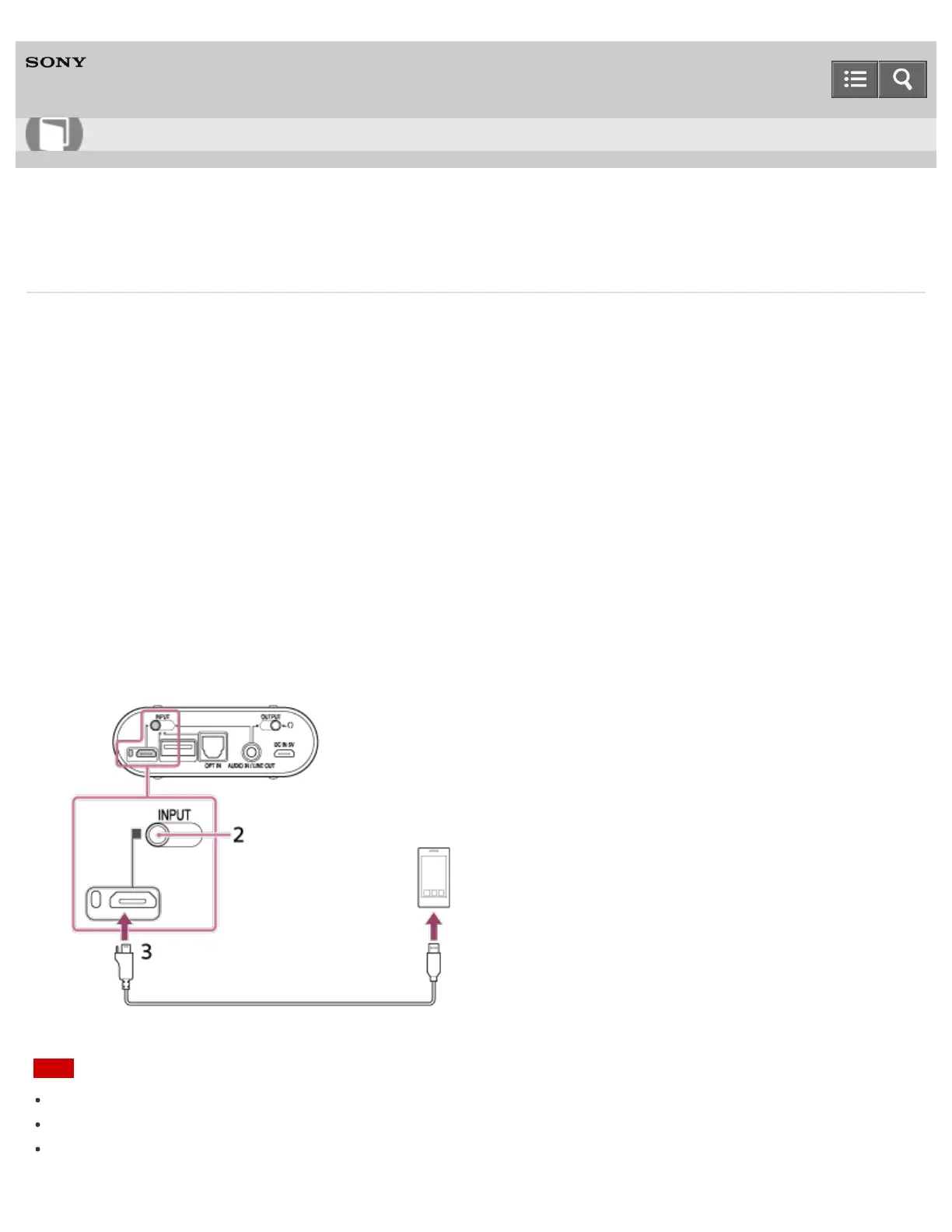3. Connect the WALKMAN to the Xperia/WALKMAN/PC (USB AUDIO) connecting port using the digital cable for