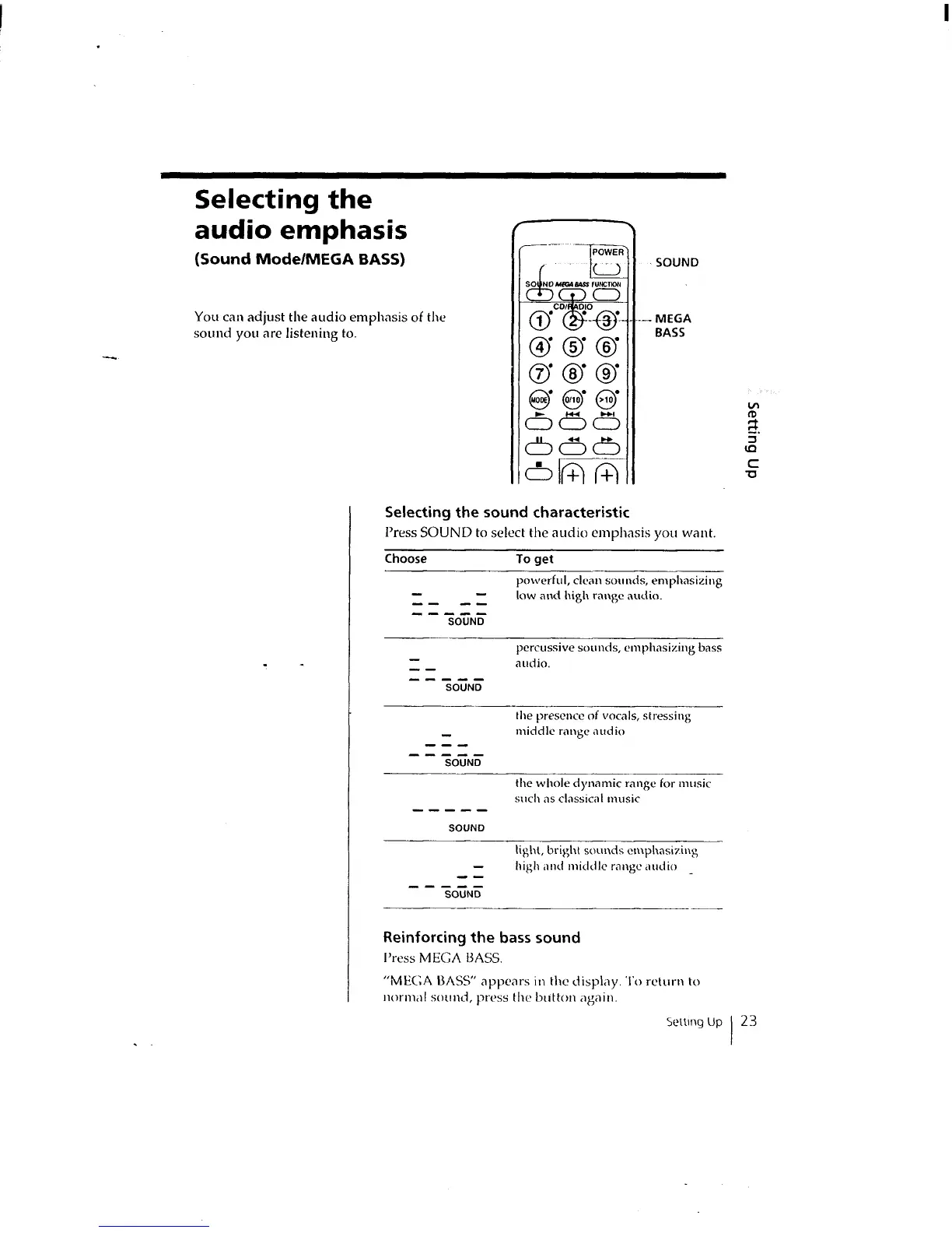 Sony PMC-202 - Selecting the audio emphasis (Sound Mode;MEGA BASS)