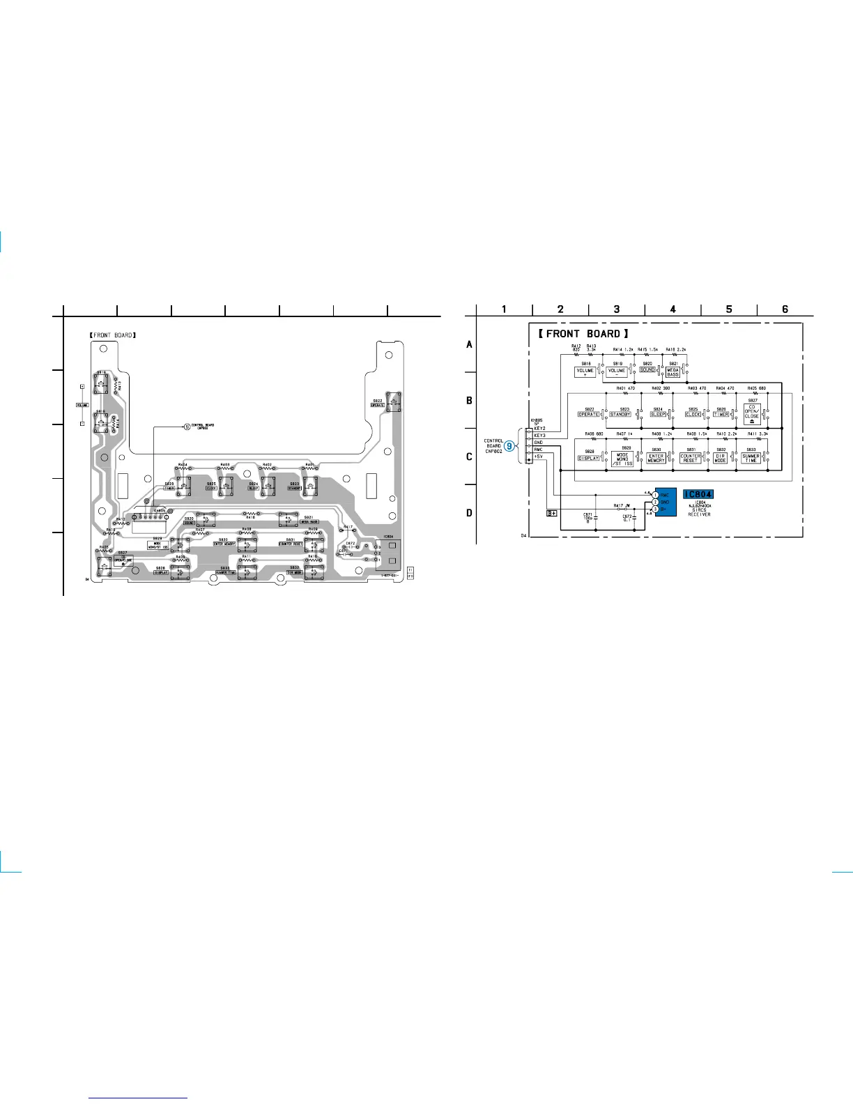 6-17. PRINTED WIRING BOARD FRONT SECTION Refer to page 34 for Note. 6-18. SCHEMATIC DIAGRAM FRONT SECTION Refer to page 33 for Note.
