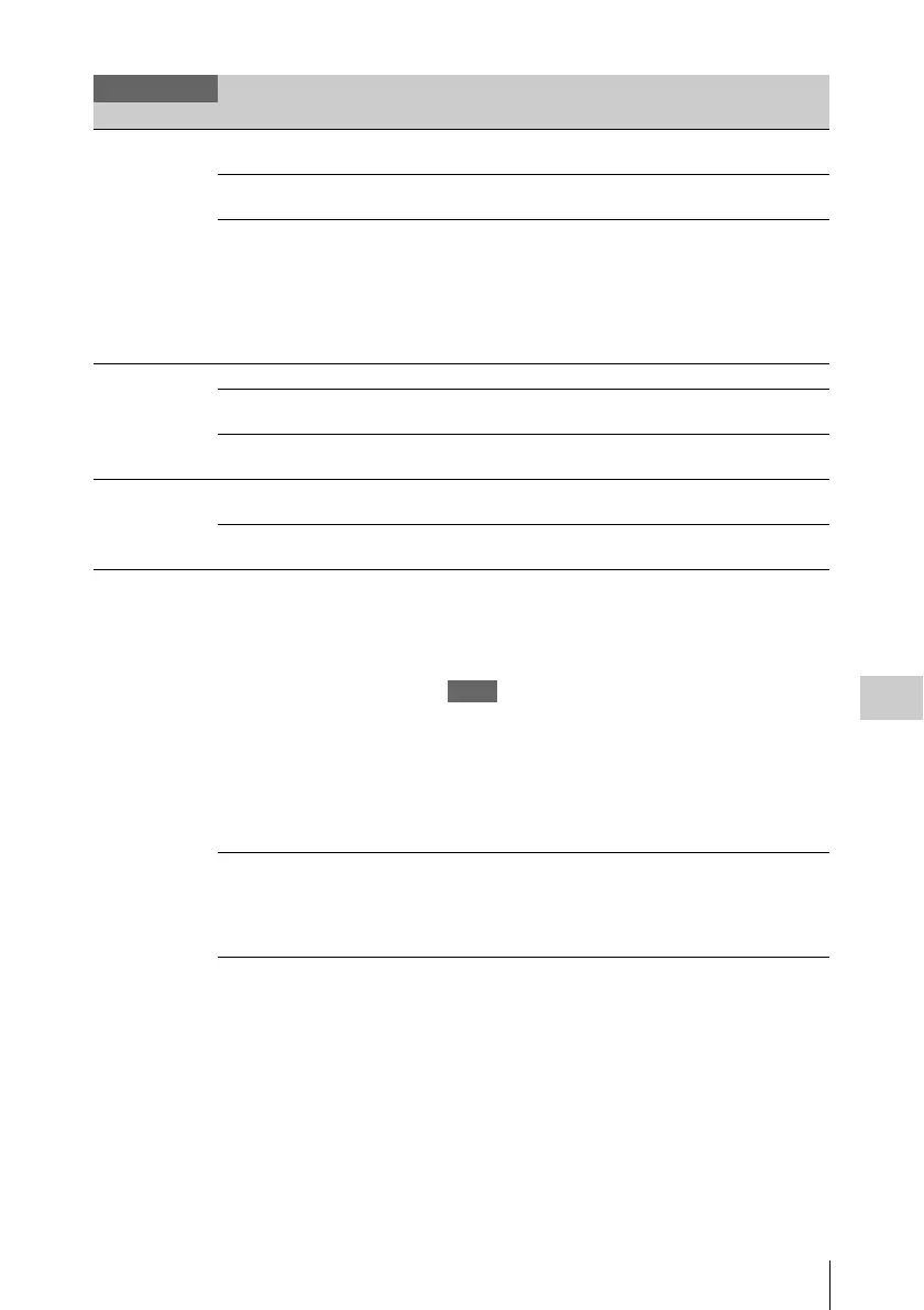 Menu items Subitems and setting values Contents