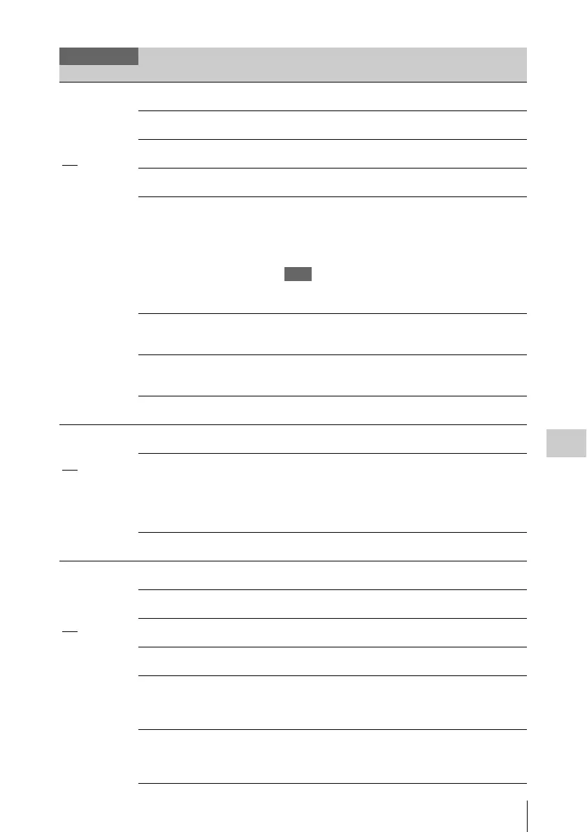 Menu items Subitems and setting values Contents