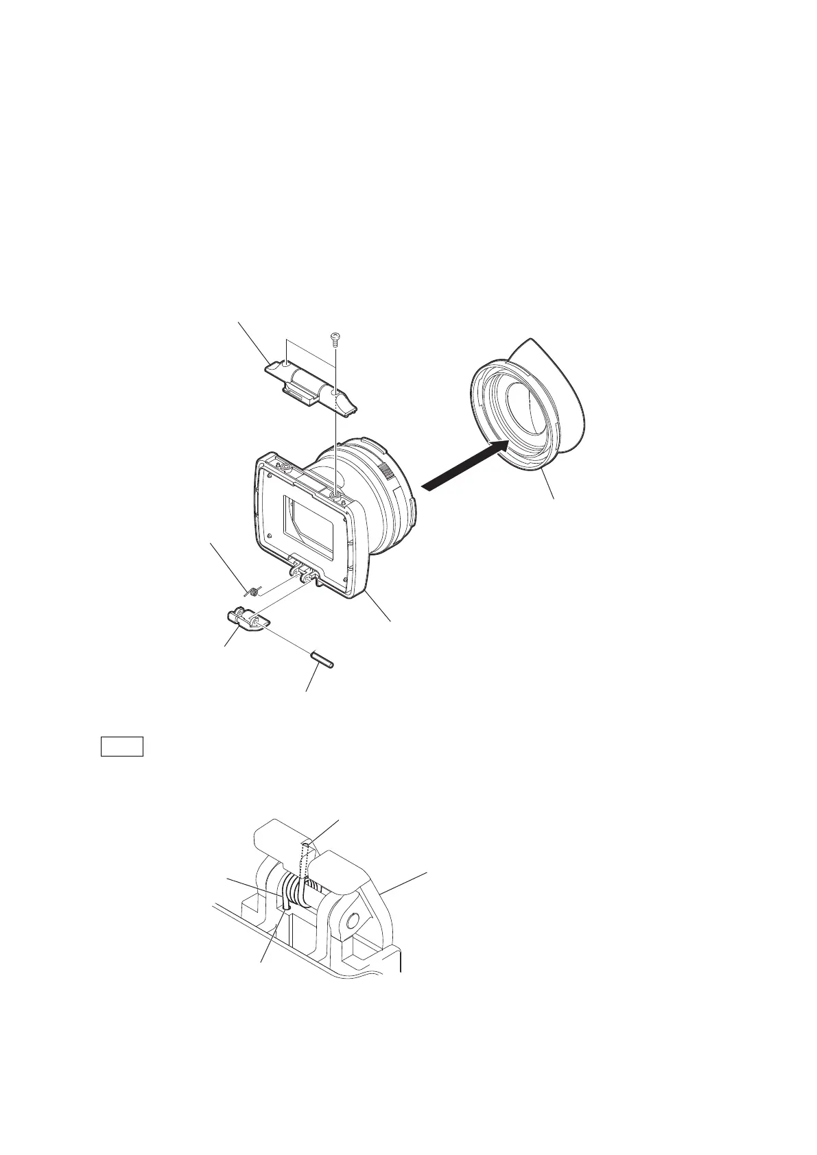 3. Remove the spring pin, spring, and lock lever from the VF loupe.