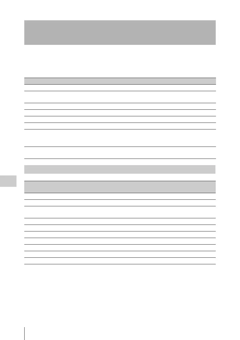 The following tables lists the functions that are assigned when the camcorder is shipped from the factory.