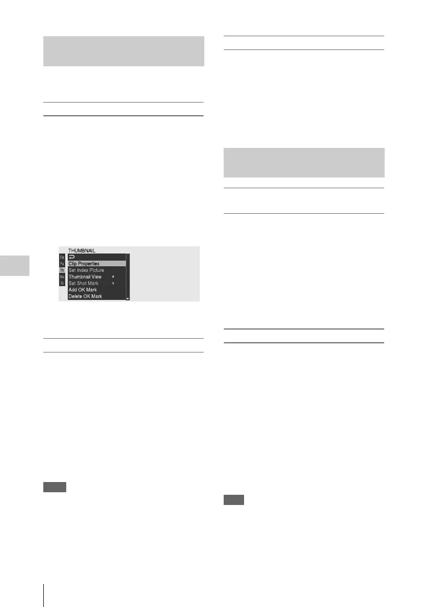 selected SxS memory card, the OK clip thumbnail