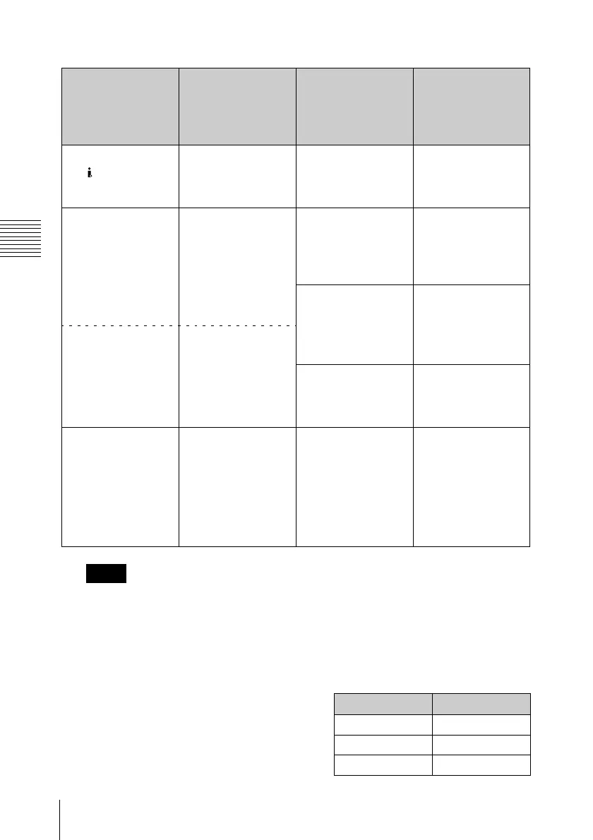 The following table shows the relation