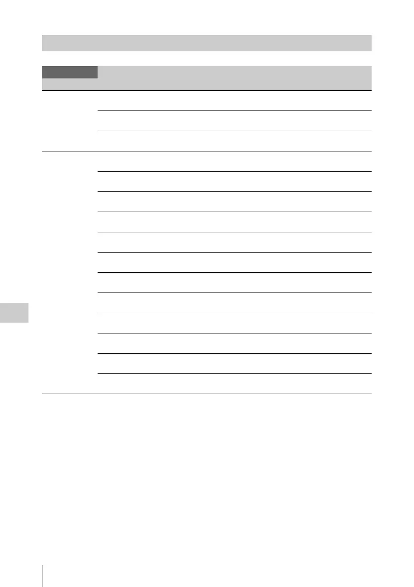 Menu items Subitems and setting values Contents
