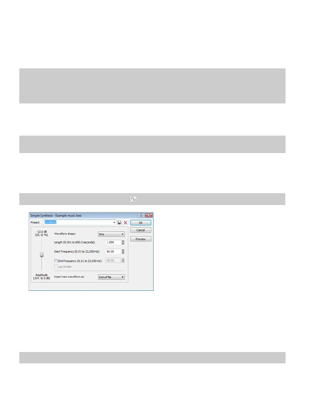 From the Insert menu, choose Synthesis, and choose Simple from the submenu. The Simple Synthesis dialog appears.