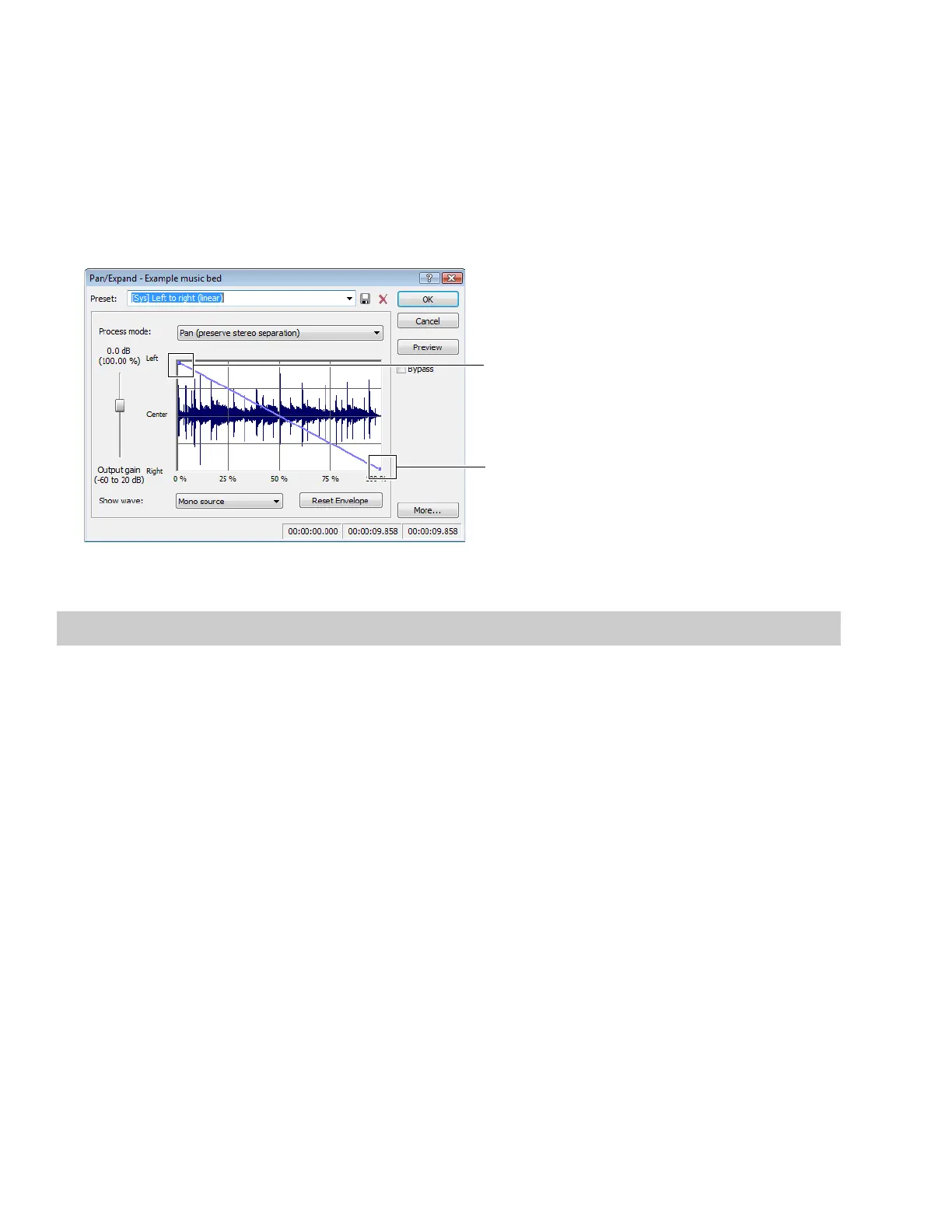 From the Preset drop-down list, choose Left to right (linear). The pan envelope is displayed on the graph.