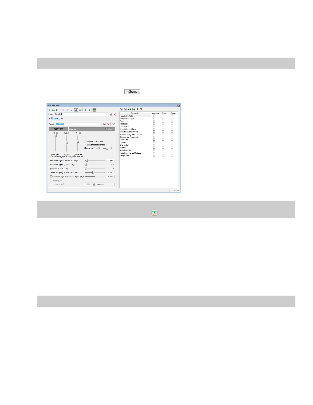 In the Plug-In Chainer, select the button ( ) for an effect that includes automatable parameters. The plug-in’s controls are