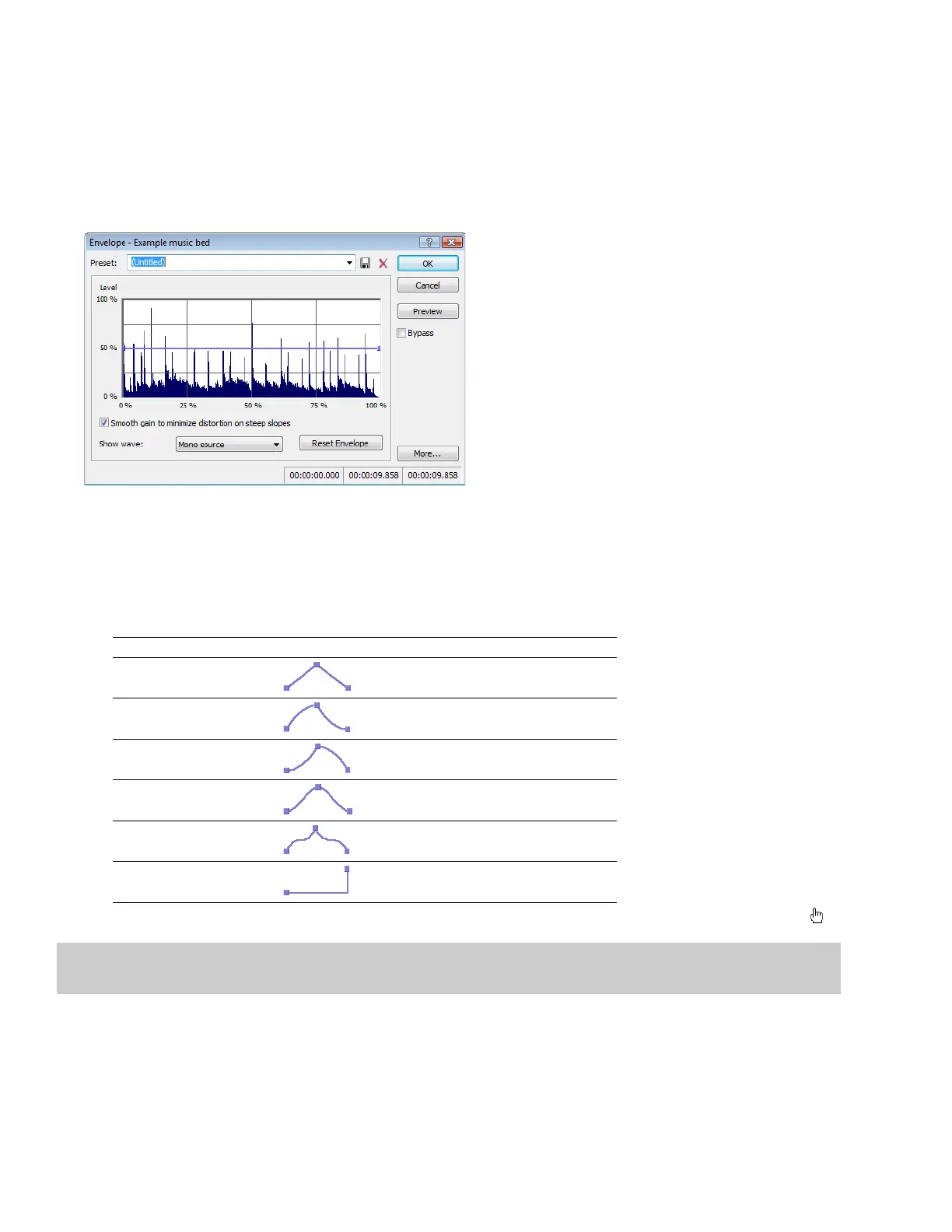 • To change the fade curve between two points, right-click an envelope segment and choose a command from the shortcut
