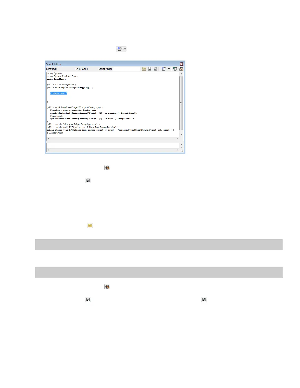 Click the Compile Script button ( ) to compile and test your edited script. If there are any errors, they will be displayed at the