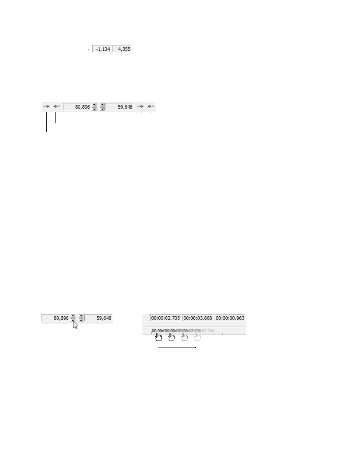 • To move loop points by larger amounts, use the mouse to drag the spinner up or down.