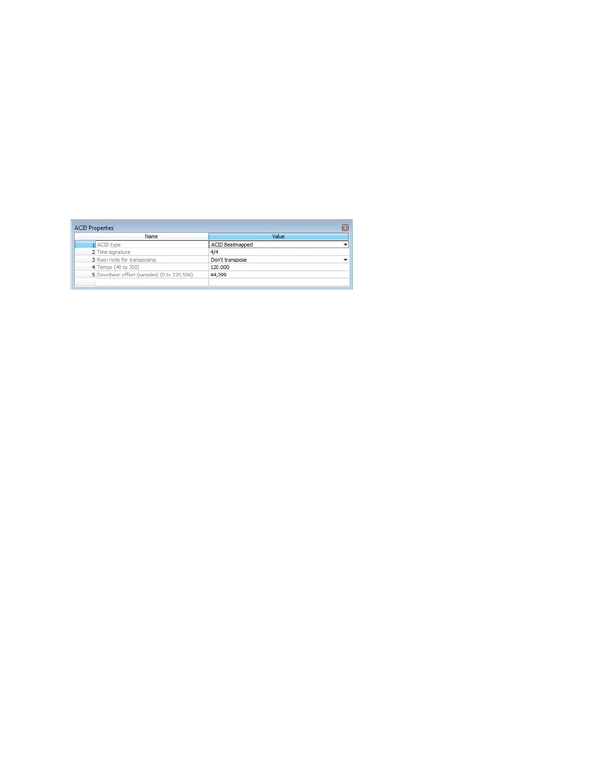 ACID beatmapped files can change tempo and pitch to match an ACID project. You must specify the file’s original tempo and root note