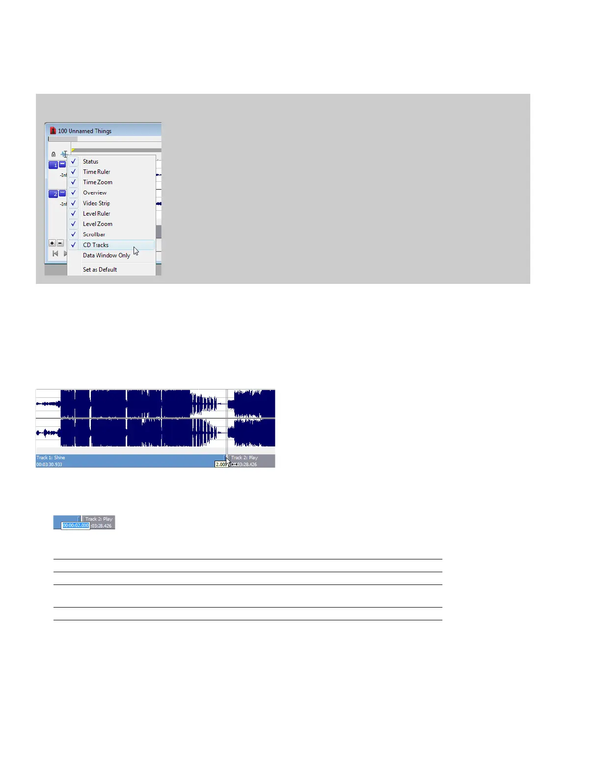 Tracks from the submenu again to display the CD layout bar.
