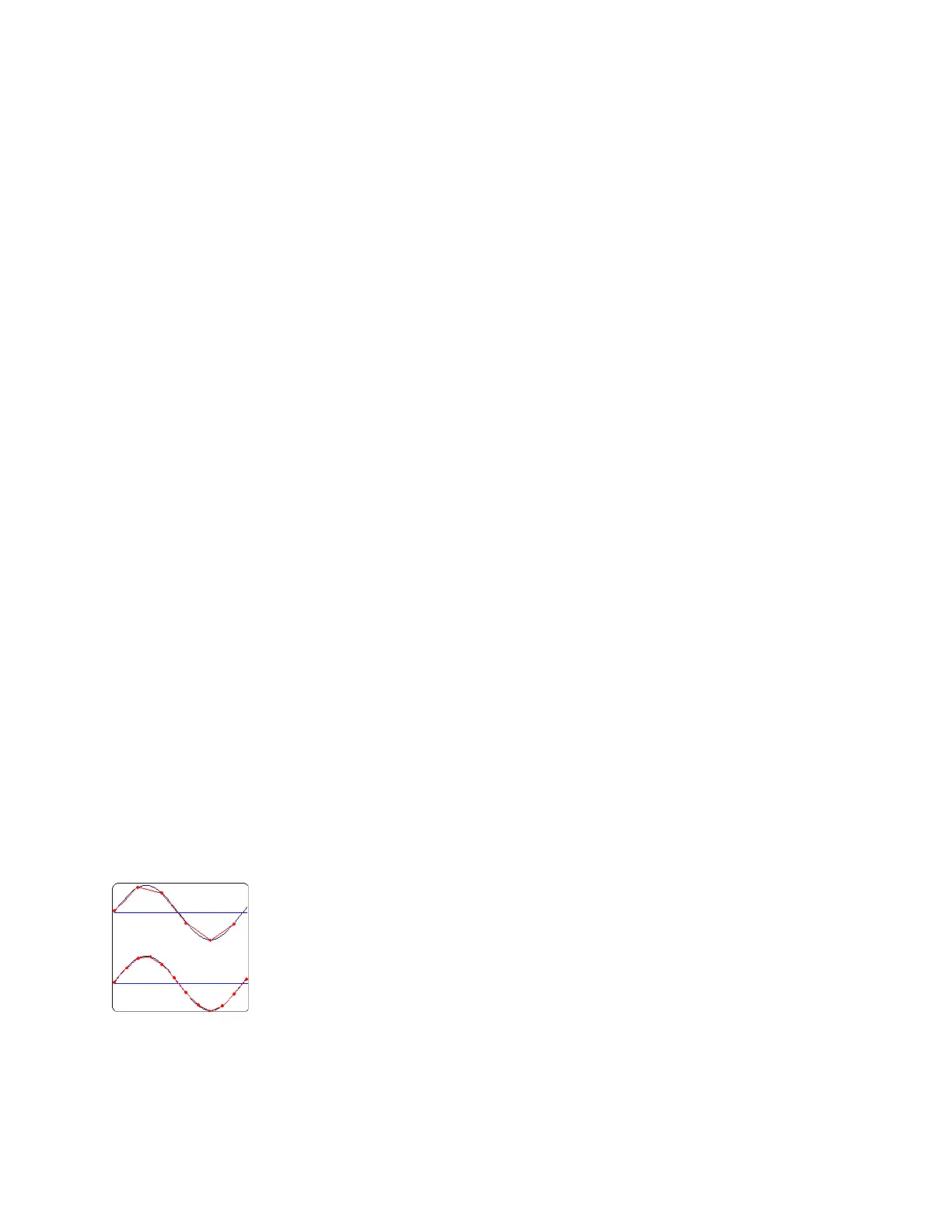 In the following example, each red dot represents one sample. Because the lower waveform is represented by twice as many samples as