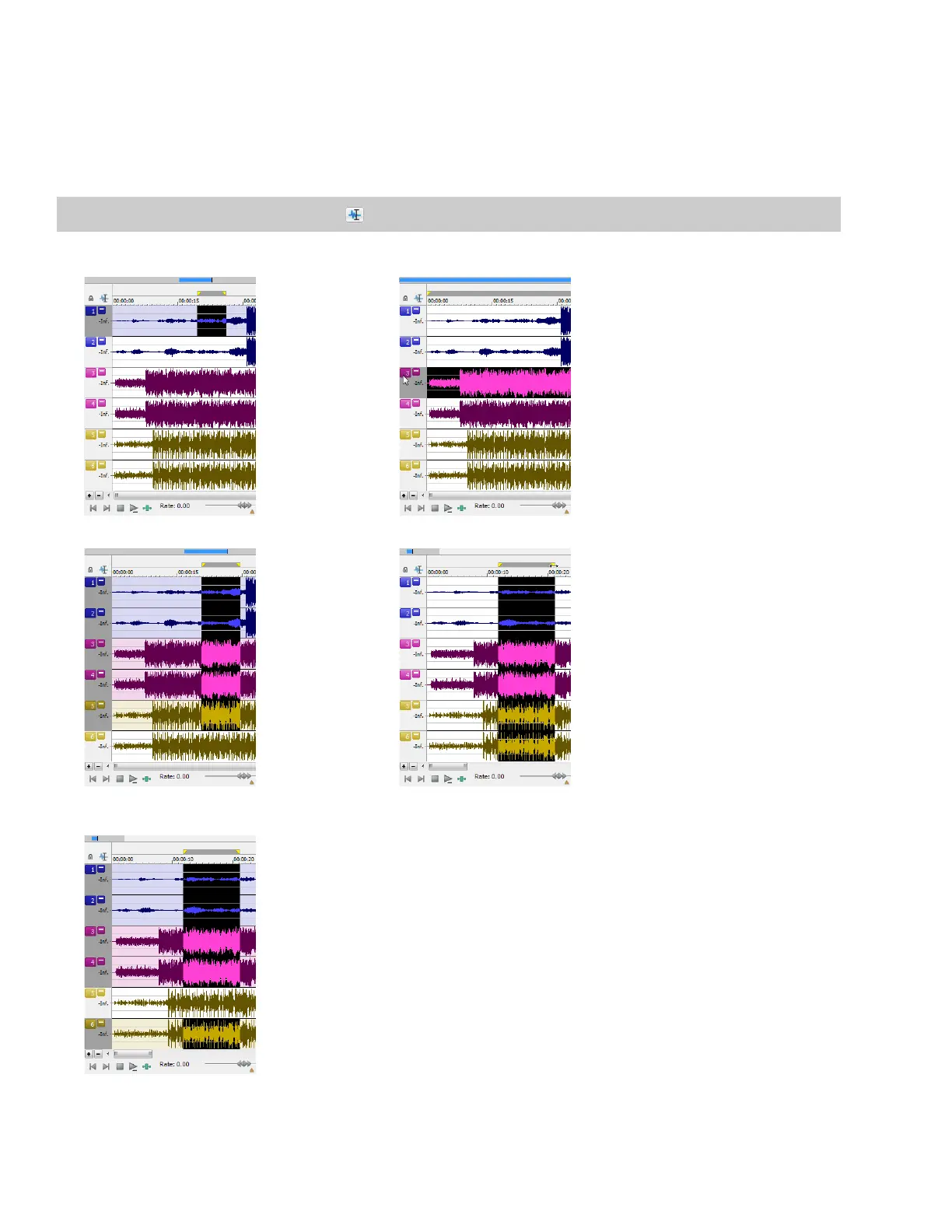 Drag across channels to select multiple channels. Drag along the divider between channels (or the loop bar above