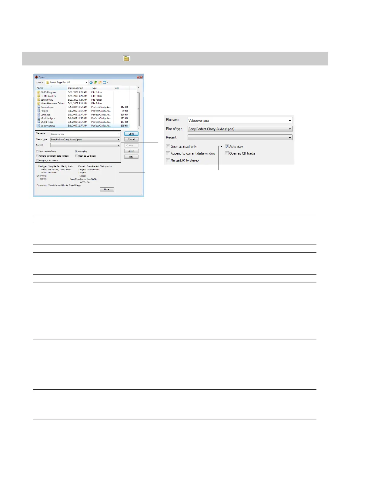 The Open dialog contains several features that allow you to locate and open audio files. These features are detailed below.